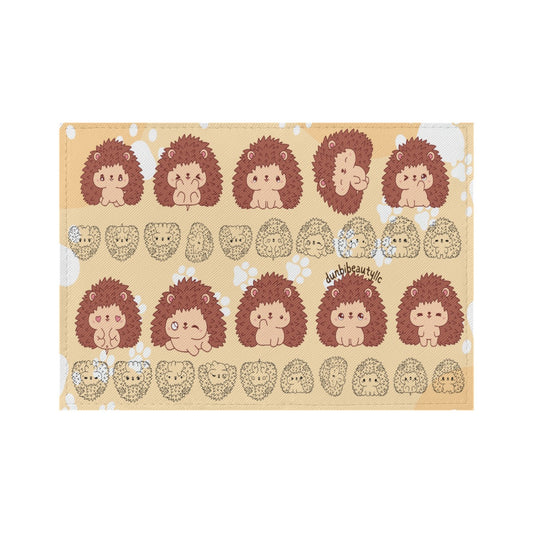 PU Card Bag Hedgehog, Kawaii, Animals, Paw Prints, Happy, Cute, Sleepy, Baby Animals, Brown, White (Designed by Dunbi)