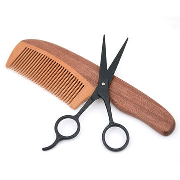 Men Intensive Wooden Beard Comb Scissors Two-piece Set Mustache Grooming Brushes