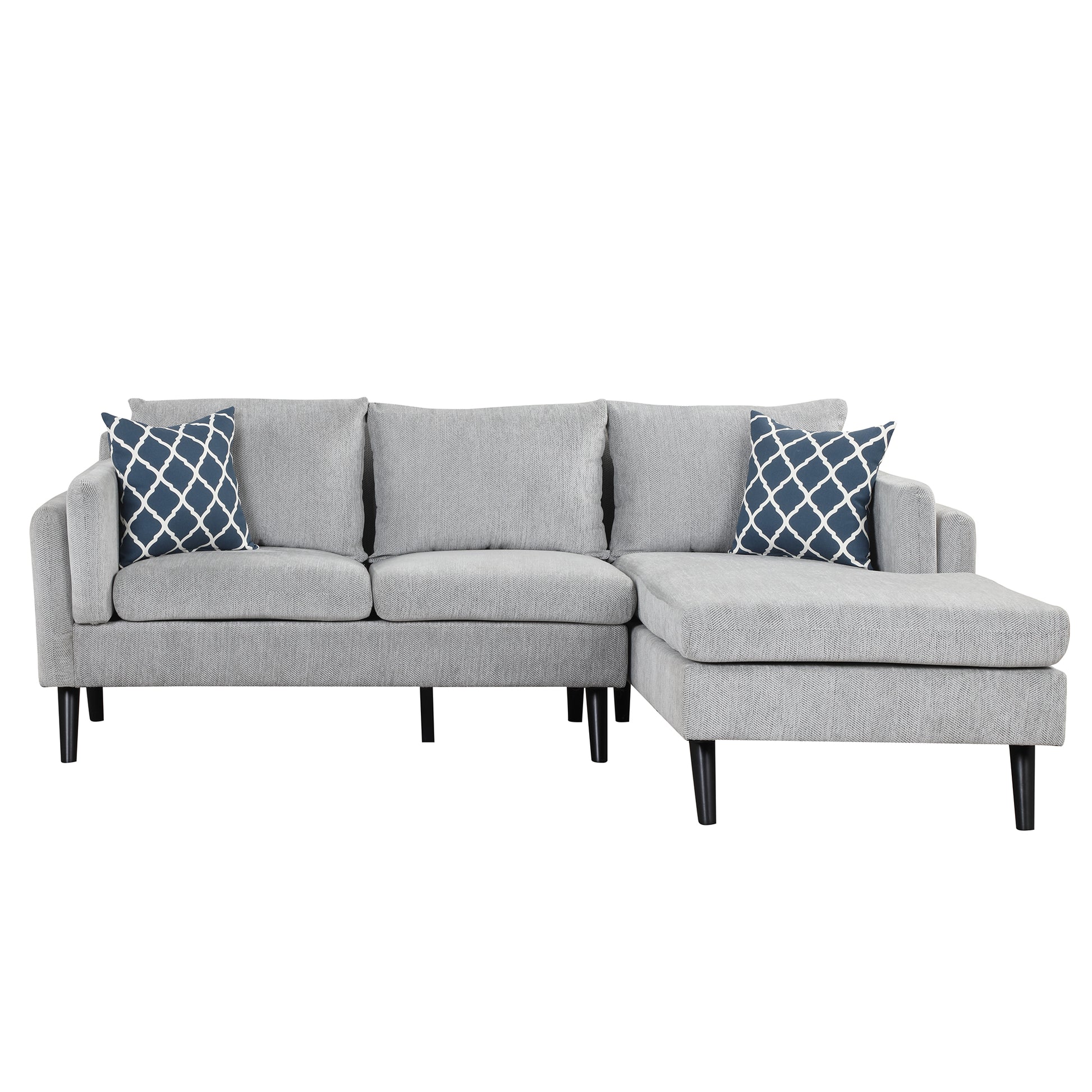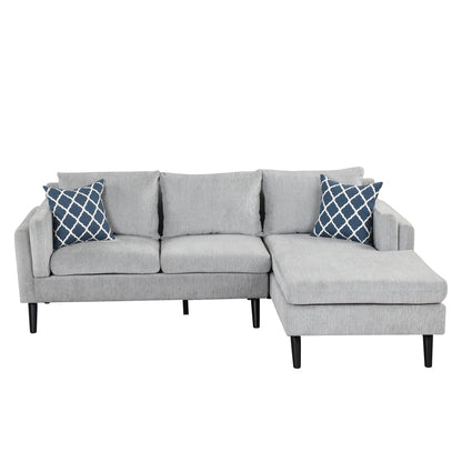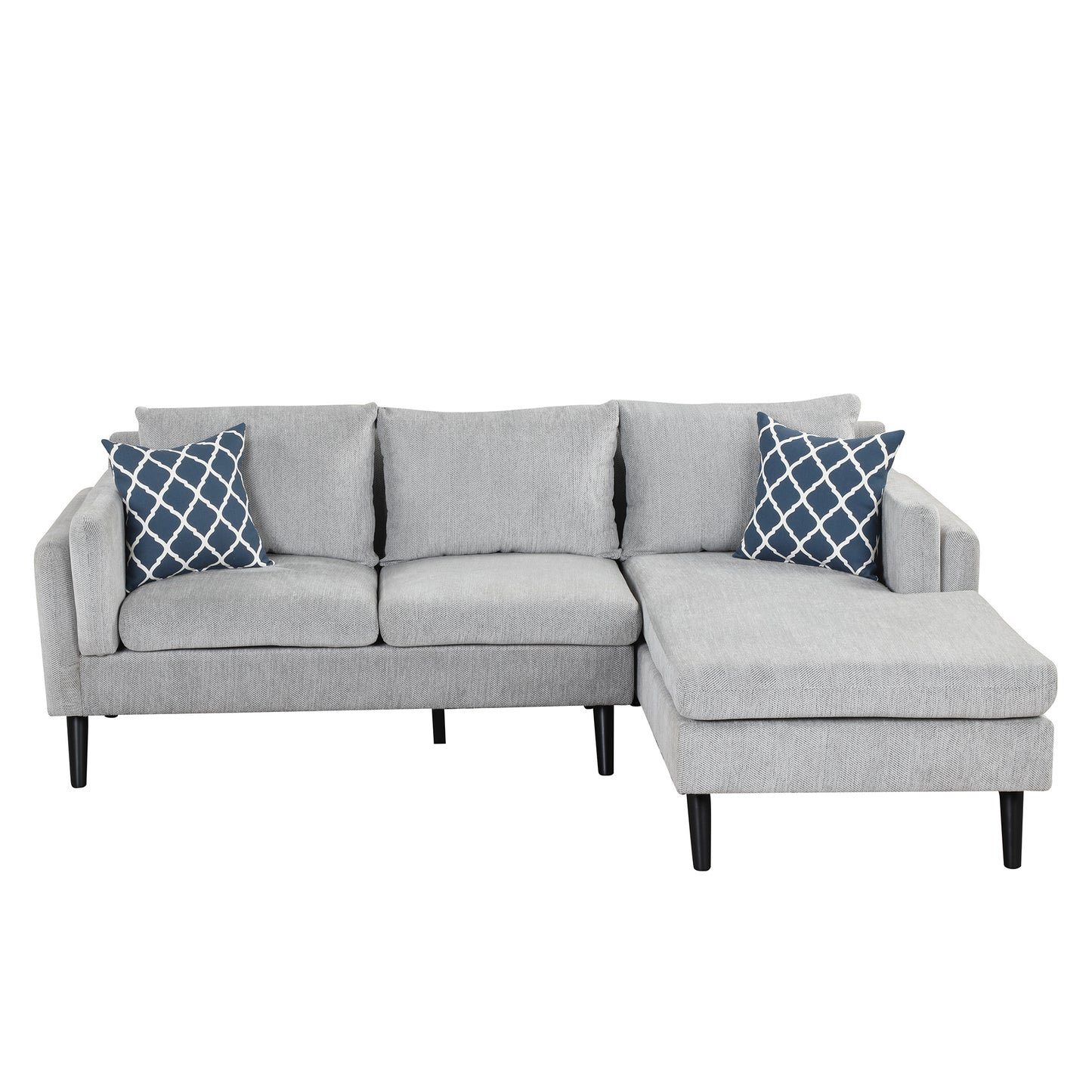 84.65" Modern Upholstered L-Shape Sofa Couch with Chaise and 2 Pillows,3-Seater Couch with rubber wood legs for Living Room,Apartment,Small Space,Light Gray
