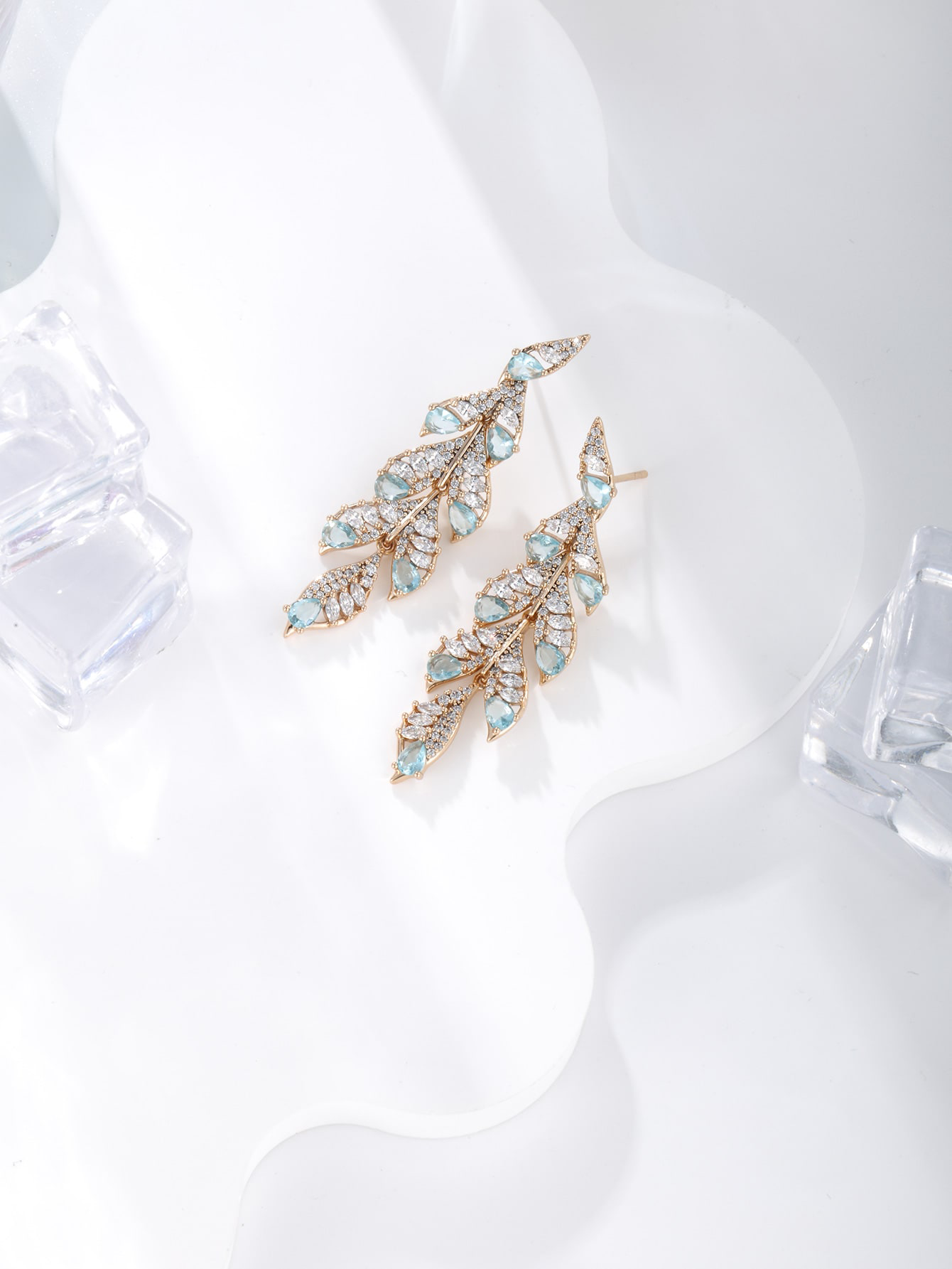 A pair of exquisite fashion temperament simple light luxury shine gorgeous cubic zirconia imitation jewel-plated 18K gold earrings girl daily dating party class reunion model wear