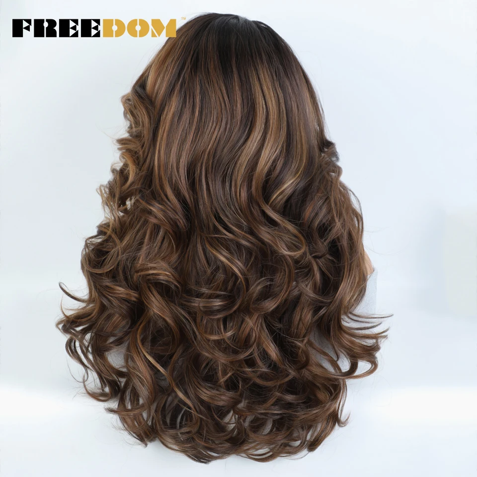 FREEDOM Synthetic Lace Front Wigs For Black Women Body Wave Lace Wig 22 inches Ombre Chocolate Brown Blonde Wigs Cosplay Wig