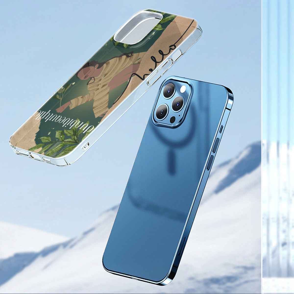 iPhone14 Series Mobile Phone Case | TPU Black Woman with Flower, Green, Grace, Beauty (Designed by Dunbi)