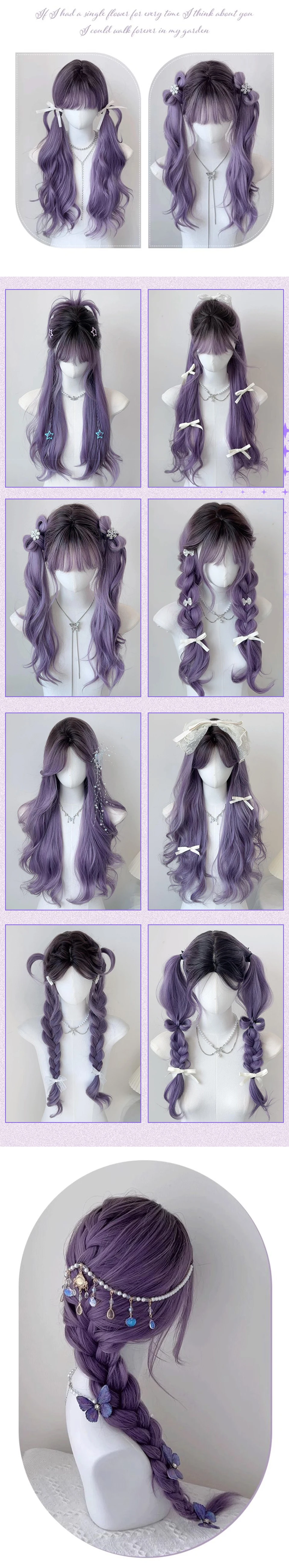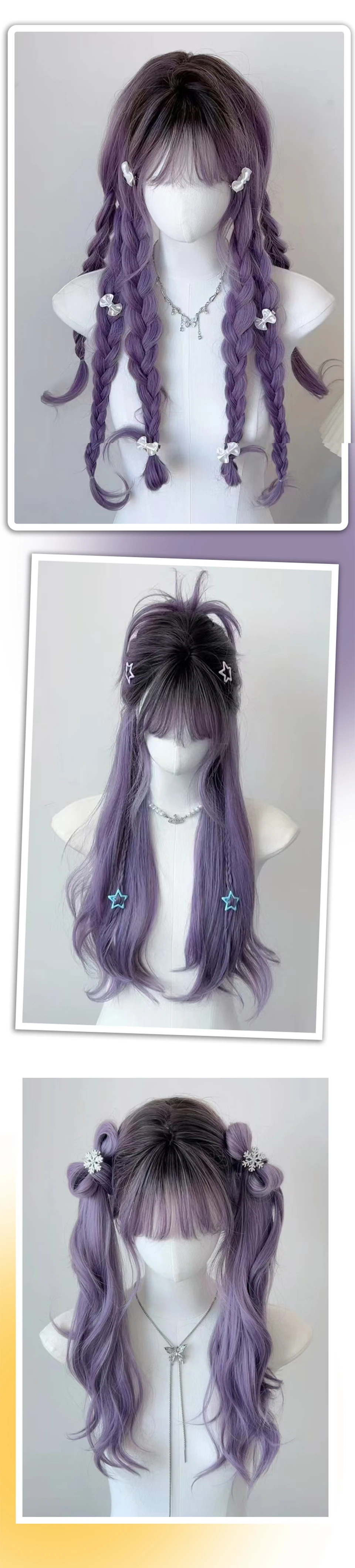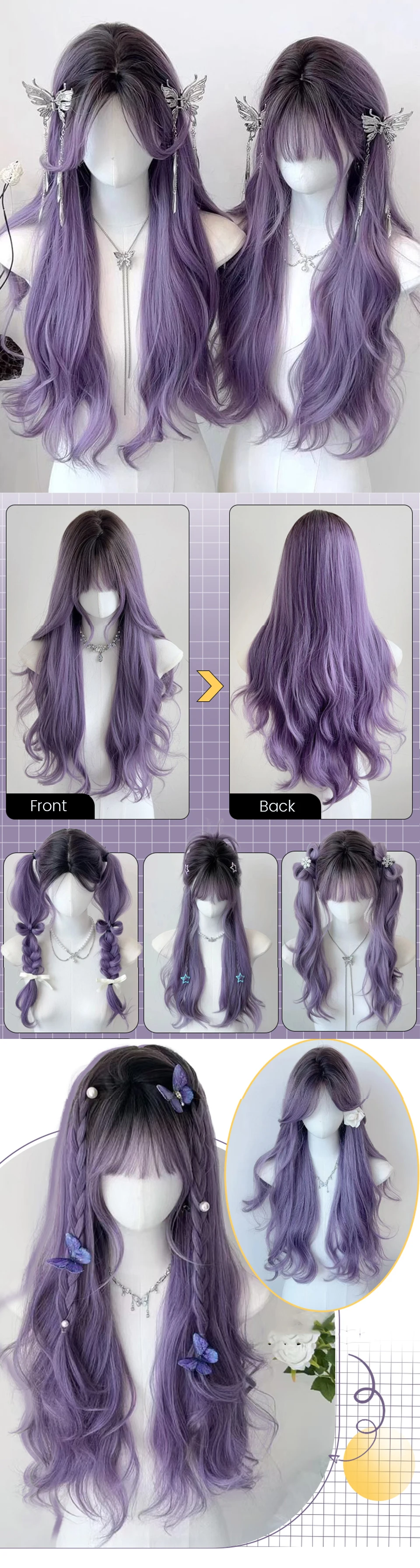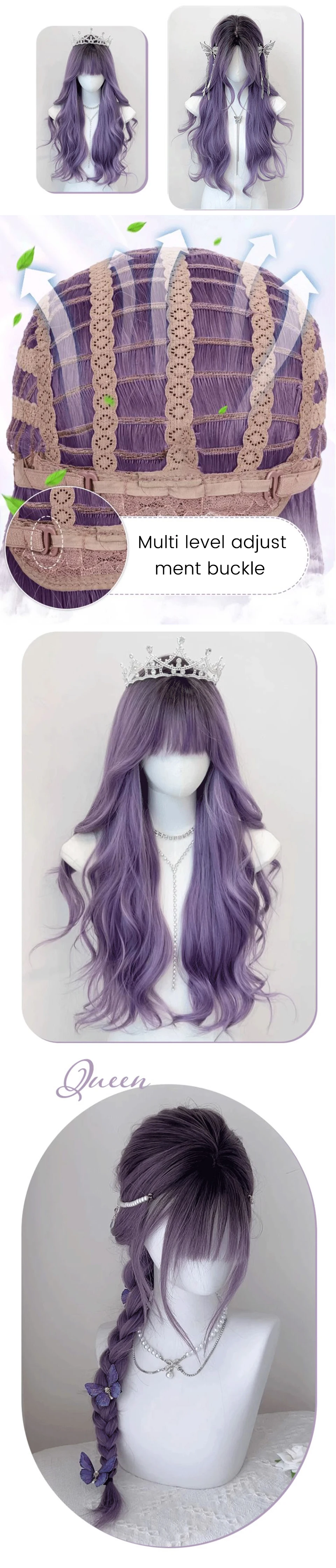 Long Wavy Wave Ombre Black Brown Purple Cosplay Wigs Heat Resistant Synthetic Wigs Middle Part Natural Lolita Wigs For Women
