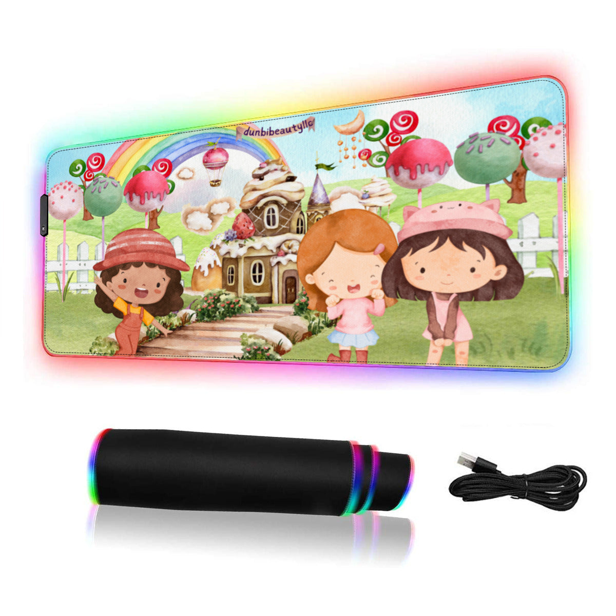 Multi-Interface Lighted Mouse Pad|Rubber - Watercolor, Candy, Pastel, Lollypops, Chocolate, Treats, Dessert, Girls, Friends, Rainbow, Candy Shop, Hot Air Balloon, Cake Pops, Chocolate Clouds (Designed by Dunbi)