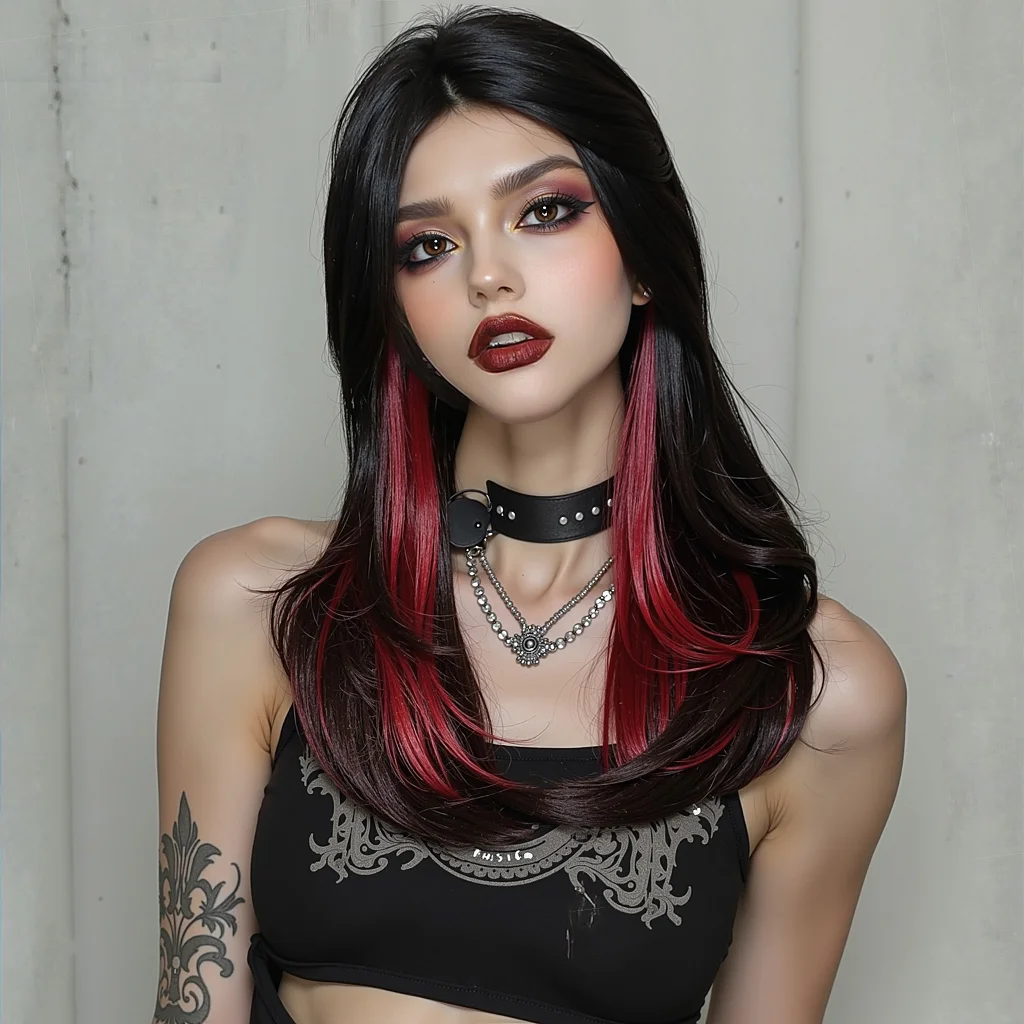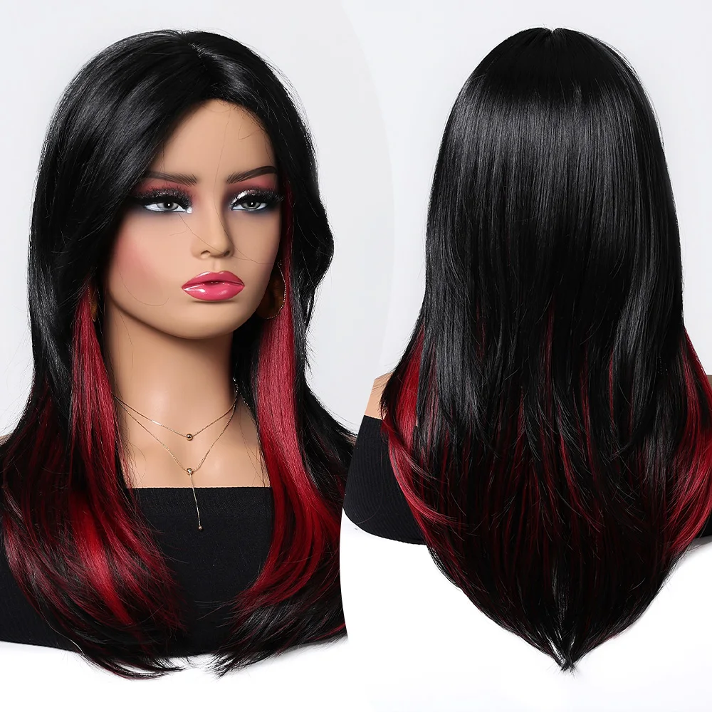 Feature 5: Women's Black Highlight red Wave Wigs
