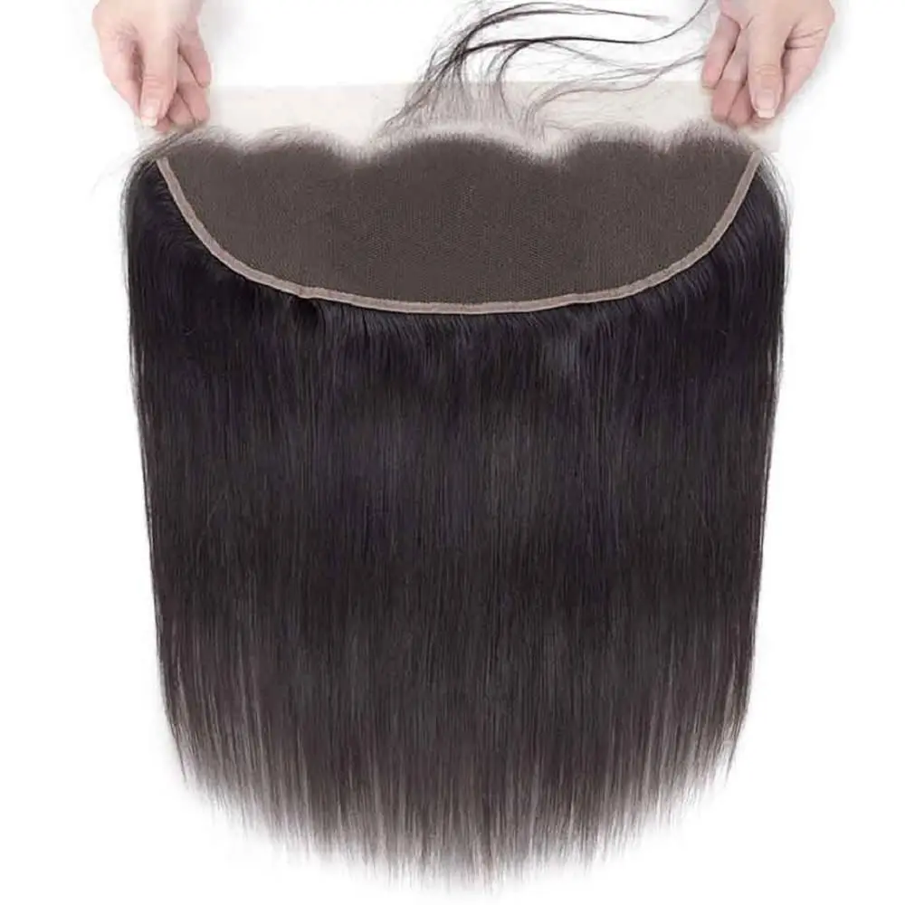 Straight Human Hair 3 Bundles with 13x4 Lace Frontal 100% Brazilian Virgin Human Hair Straight Bundles Frontal Natural Color #1B