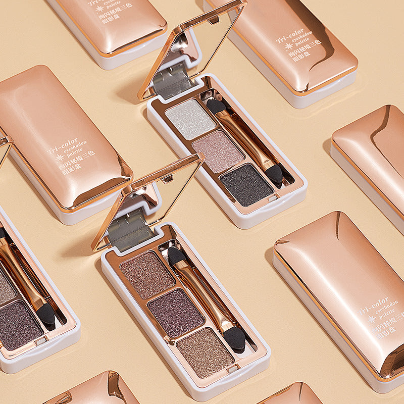 Three Color Eye Shadow Plate With Pearly Light