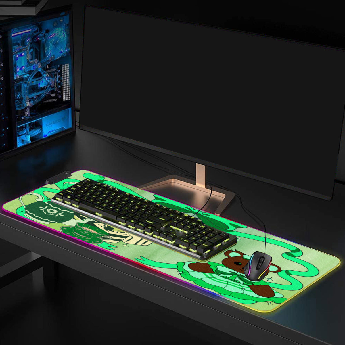 Illuminated Mouse Pad|Rubber - Cute Teddy Bear, Tea Party, Ribbon, Bows, Cakes, Cute, Victorian, Doll, Cute Girl, Green Style 2 (Designed by Dunbi)