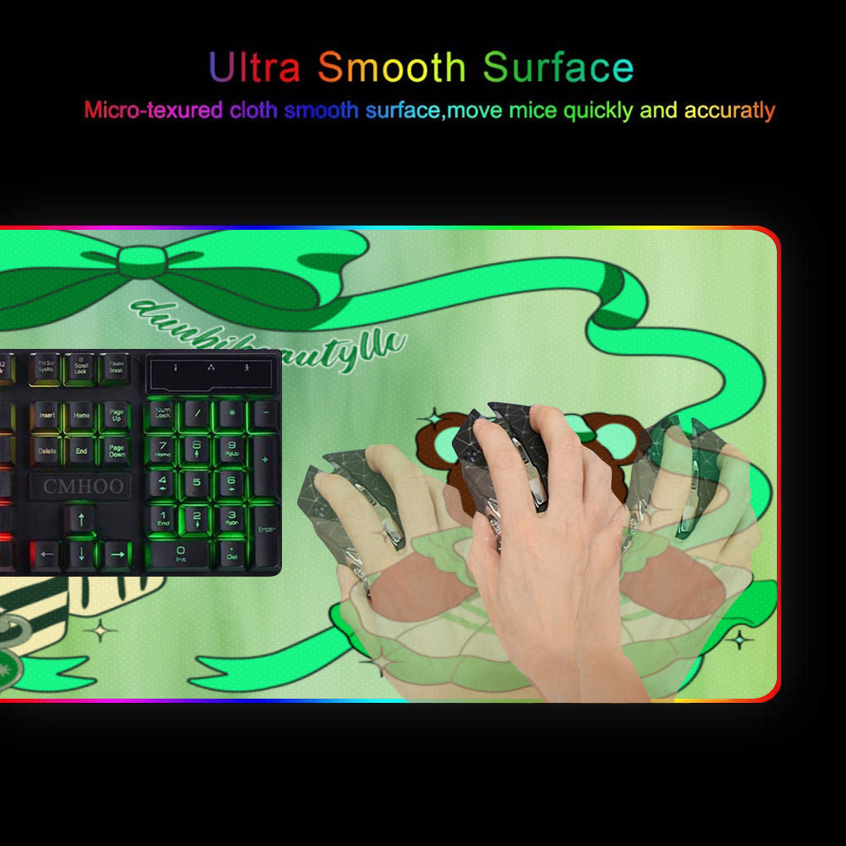 [product performance] the LED game mouse pad provides 9 static mode lights and 3 dynamic modes for you to choose from. Turn off the memory function to remember the last selected lighting mode. Super light fiber chroma will give you a colorful game environment. This mouse pad is made of natural rubber, its bottom can lock the desktop firmly, and the surface of micro textured cloth makes the mouse control extremely accurate and smooth. When the liquid splashes on the mat, it forms droplets and slides down. It won't delay your work or play.