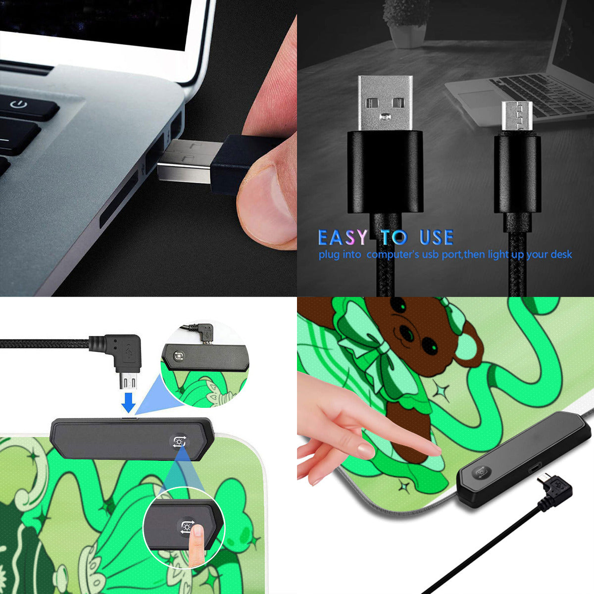 [instructions] this RGB light-emitting mouse pad is powered by USB, plug and play, without driver. One button control light mode. Press once to change lighting mode, press twice to change brightness, press and hold for about 3 seconds to turn on / off.