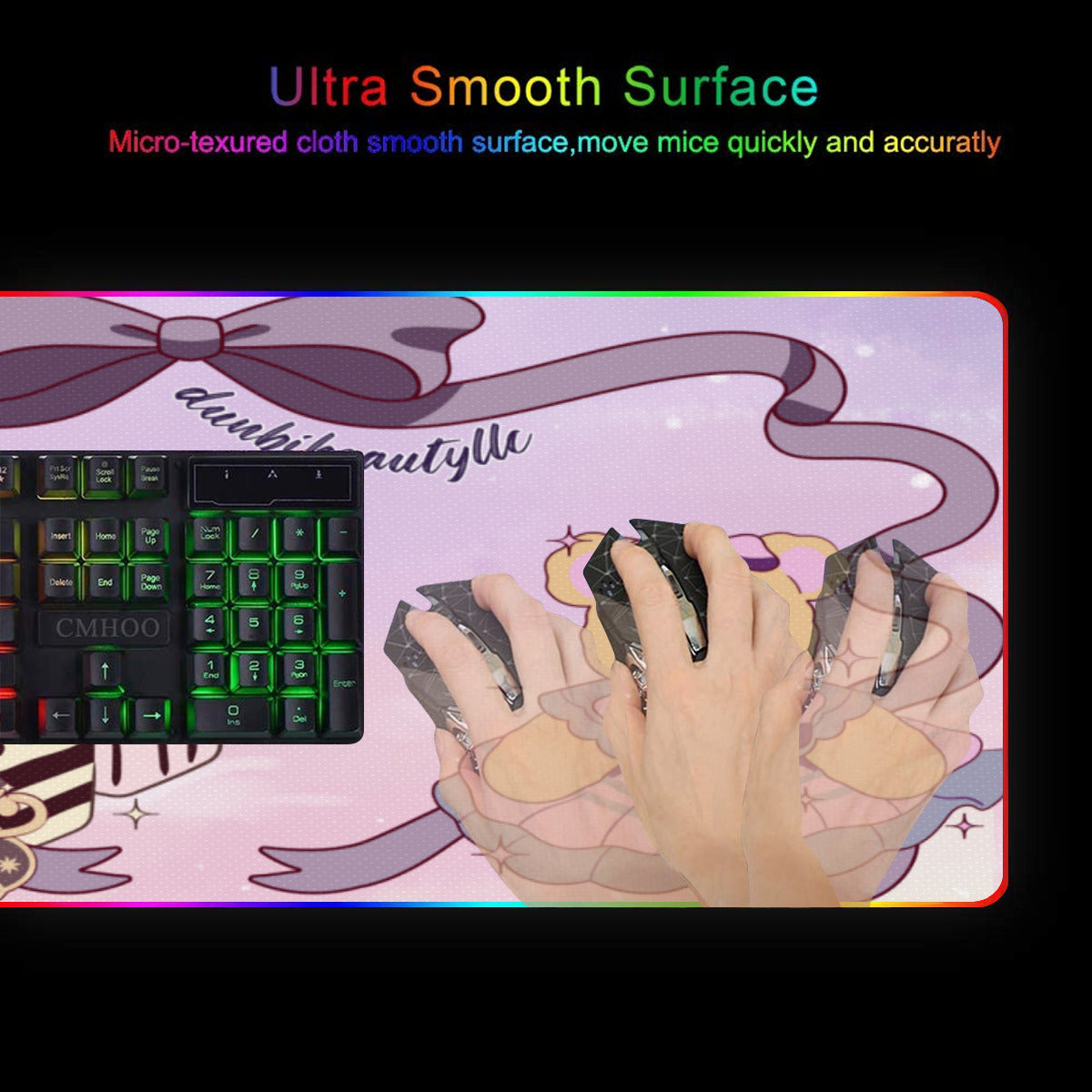 [product performance] the LED game mouse pad provides 9 static mode lights and 3 dynamic modes for you to choose from. Turn off the memory function to remember the last selected lighting mode. Super light fiber chroma will give you a colorful game environment. This mouse pad is made of natural rubber, its bottom can lock the desktop firmly, and the surface of micro textured cloth makes the mouse control extremely accurate and smooth. When the liquid splashes on the mat, it forms droplets and slides down. It won't delay your work or play.
