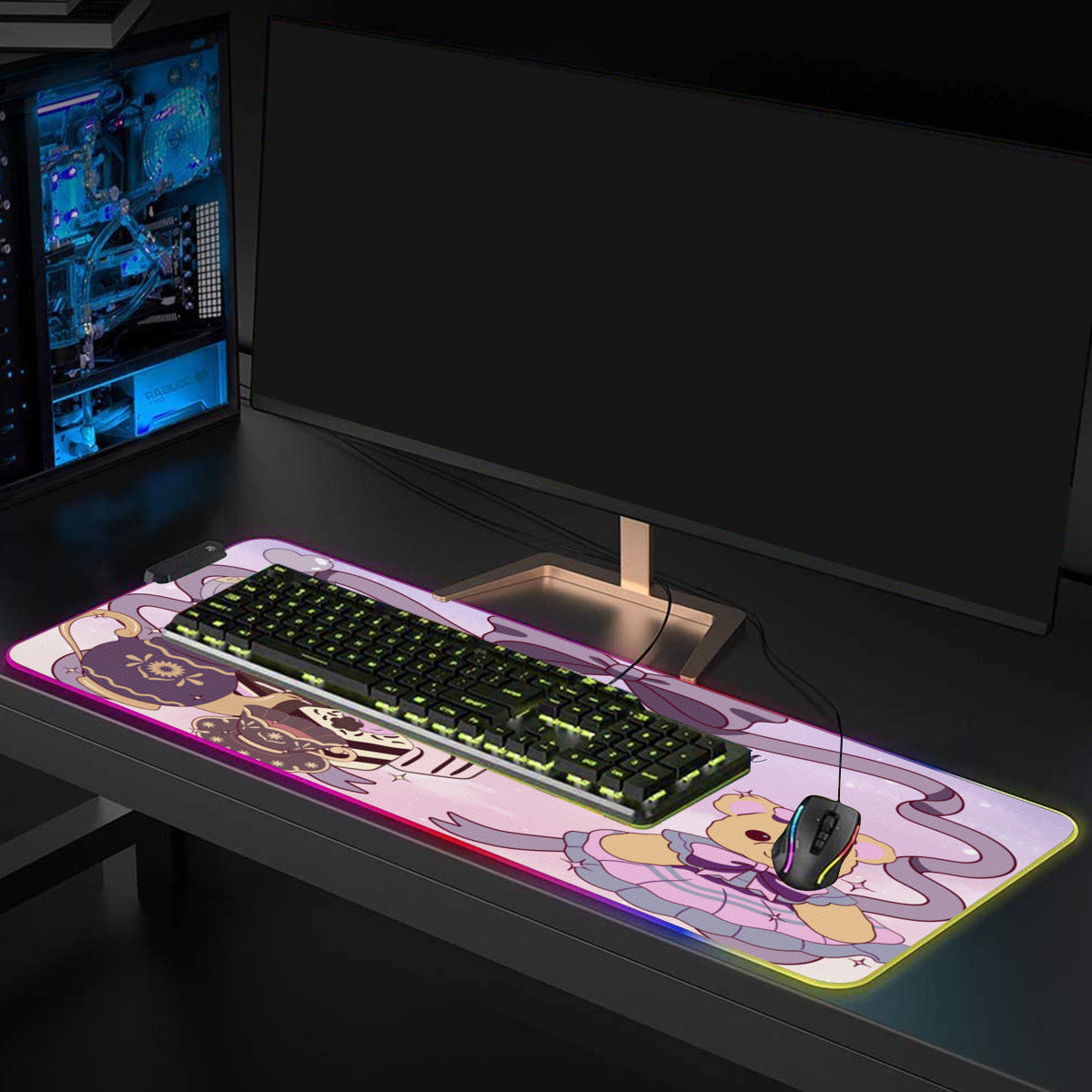 Illuminated Mouse Pad|Rubber - Cute Teddy Bear, Tea Party, Ribbon, Bows, Cakes, Cute, Victorian, Doll, Cute Girl, Purple Style 2, Pastel Galaxy (Designed by Dunbi)