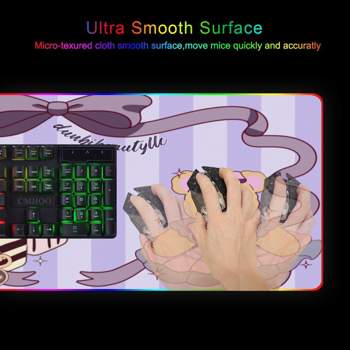 Illuminated Mouse Pad|Rubber - Cute Teddy Bear, Tea Party, Ribbon, Bows, Cakes, Cute, Victorian, Doll, Cute Girl, Purple Style 1, Stripes (Designed by Dunbi)