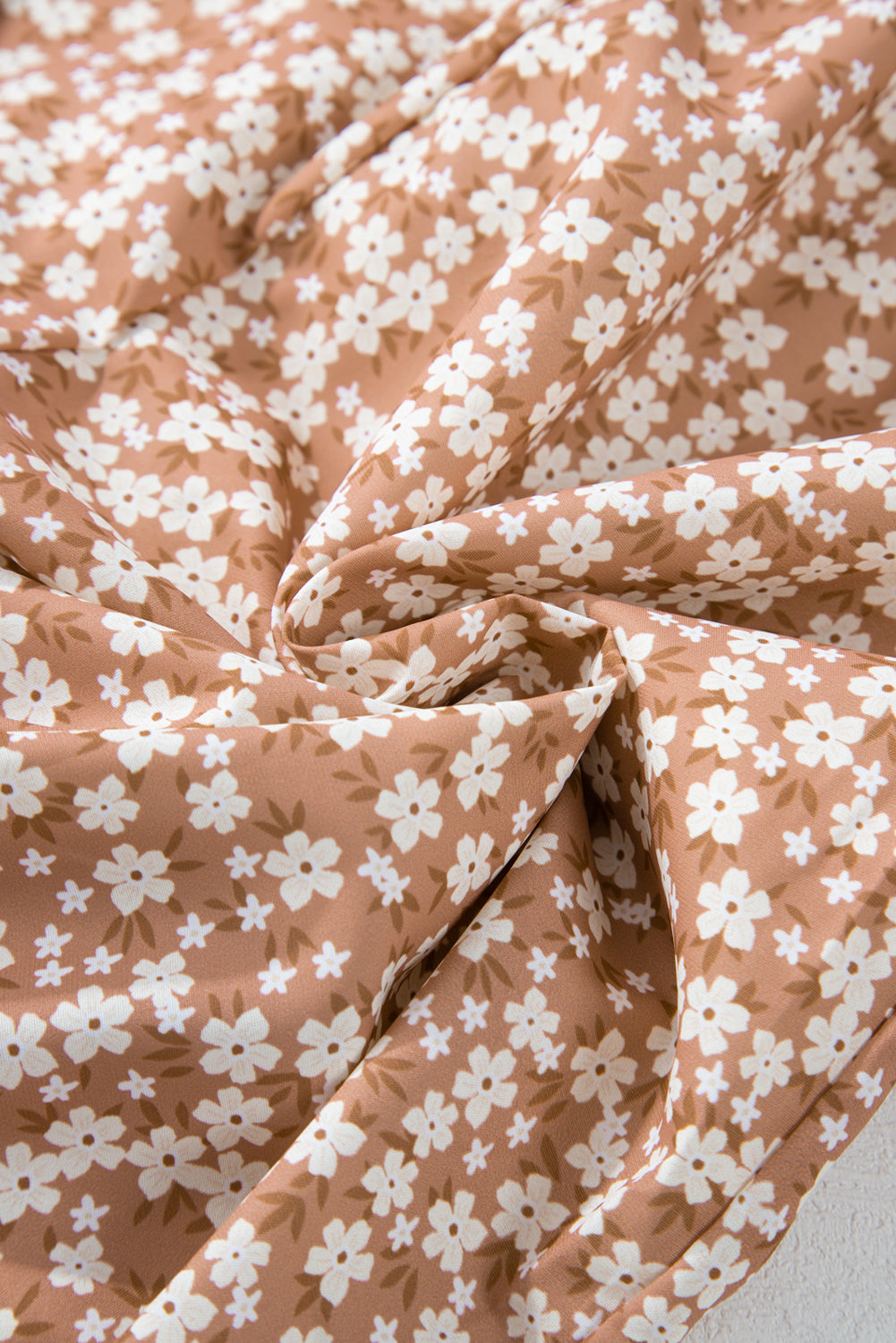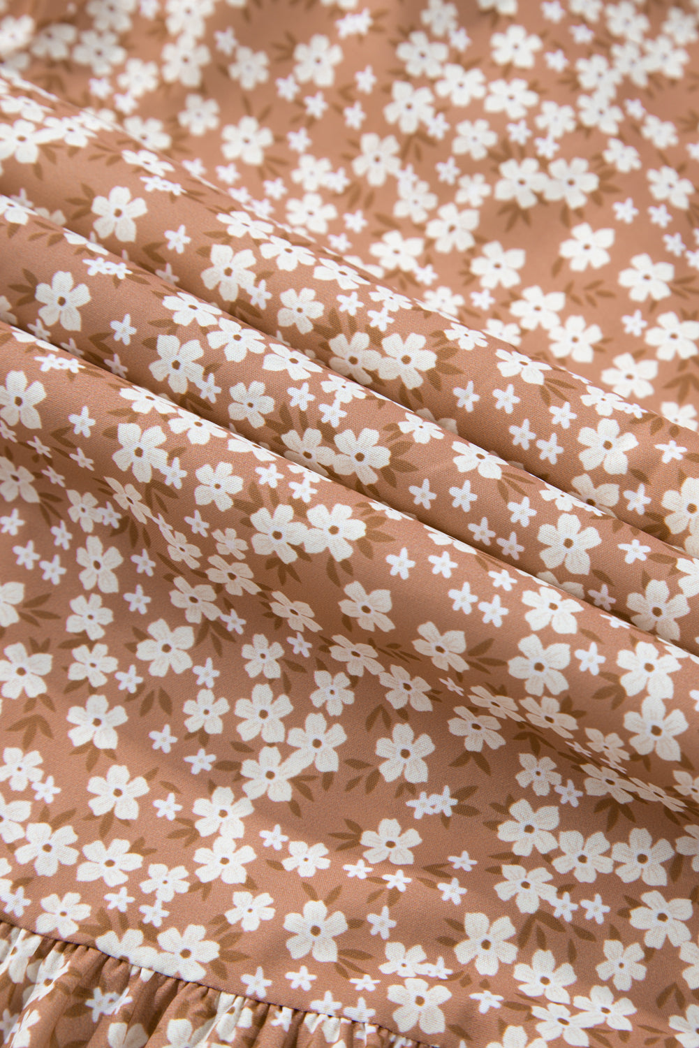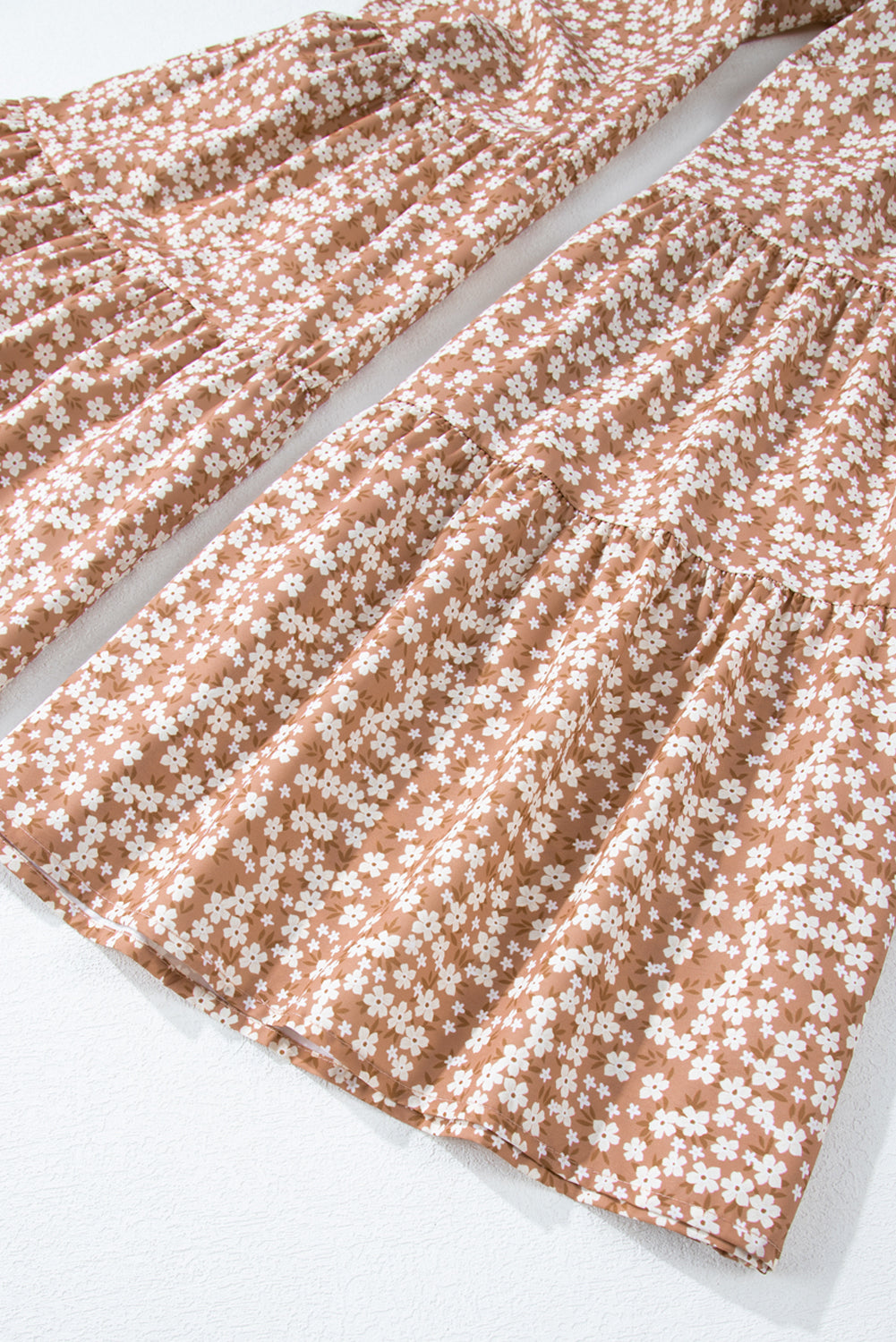 Khaki Thin Straps Smocked Bodice Wide Leg Floral Jumpsuit