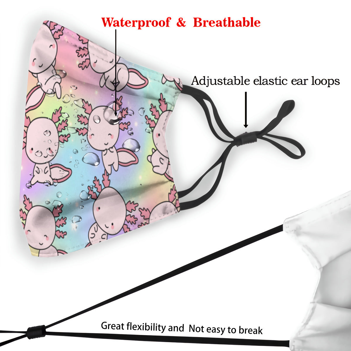 Mask 2 Sets (Without Filter)|Polyester - Axolotl, Pastel Rainbow, Cute, Kawaii, Aesthetic, Art, Pink, Blue, Yellow, Green, Purple (Designed by Dunbi)
