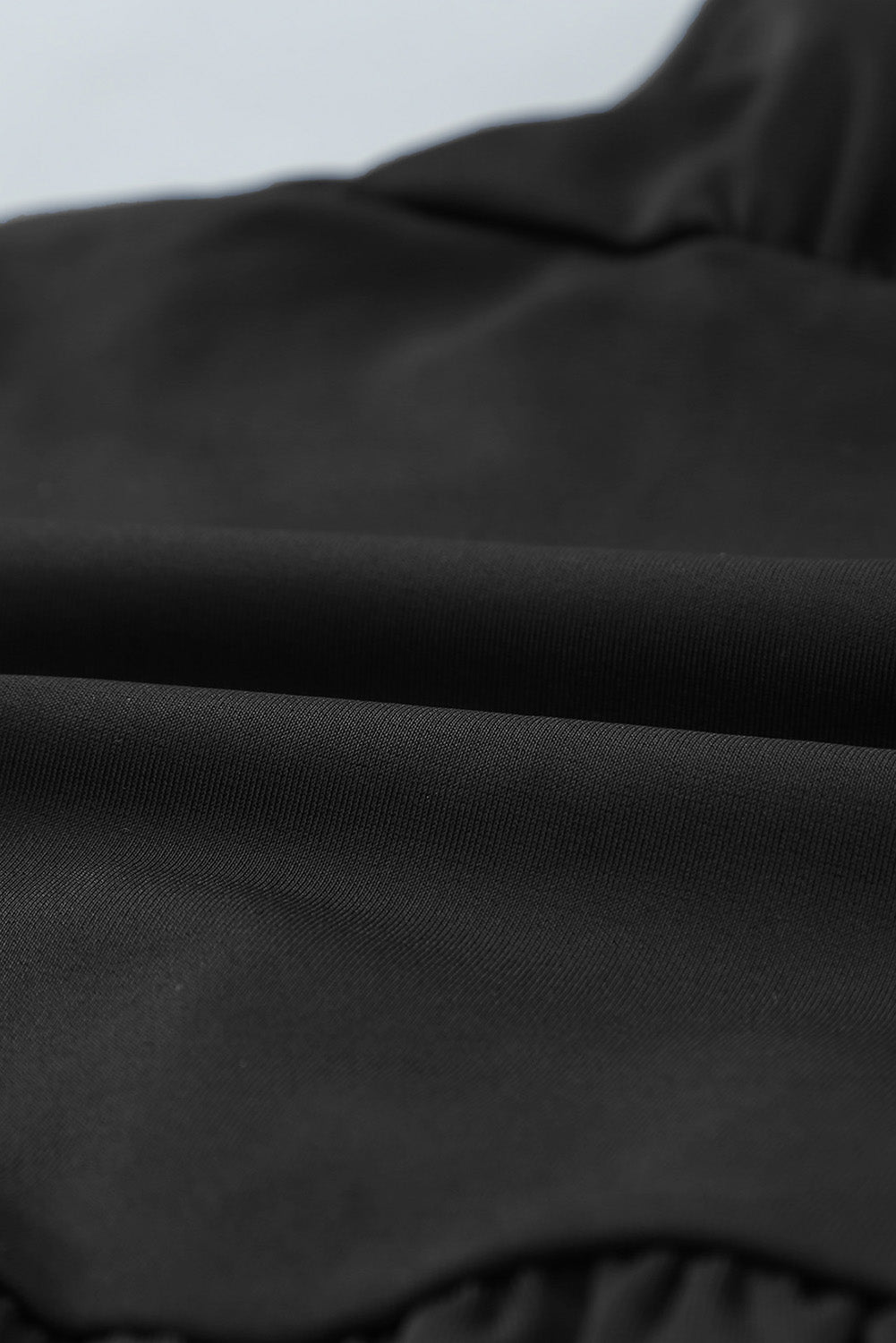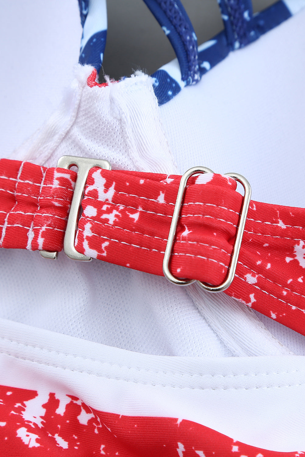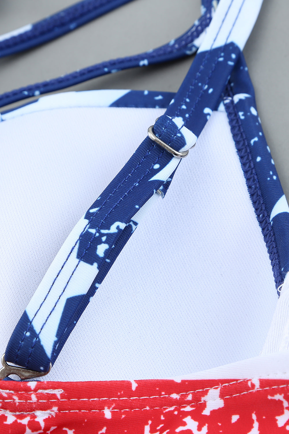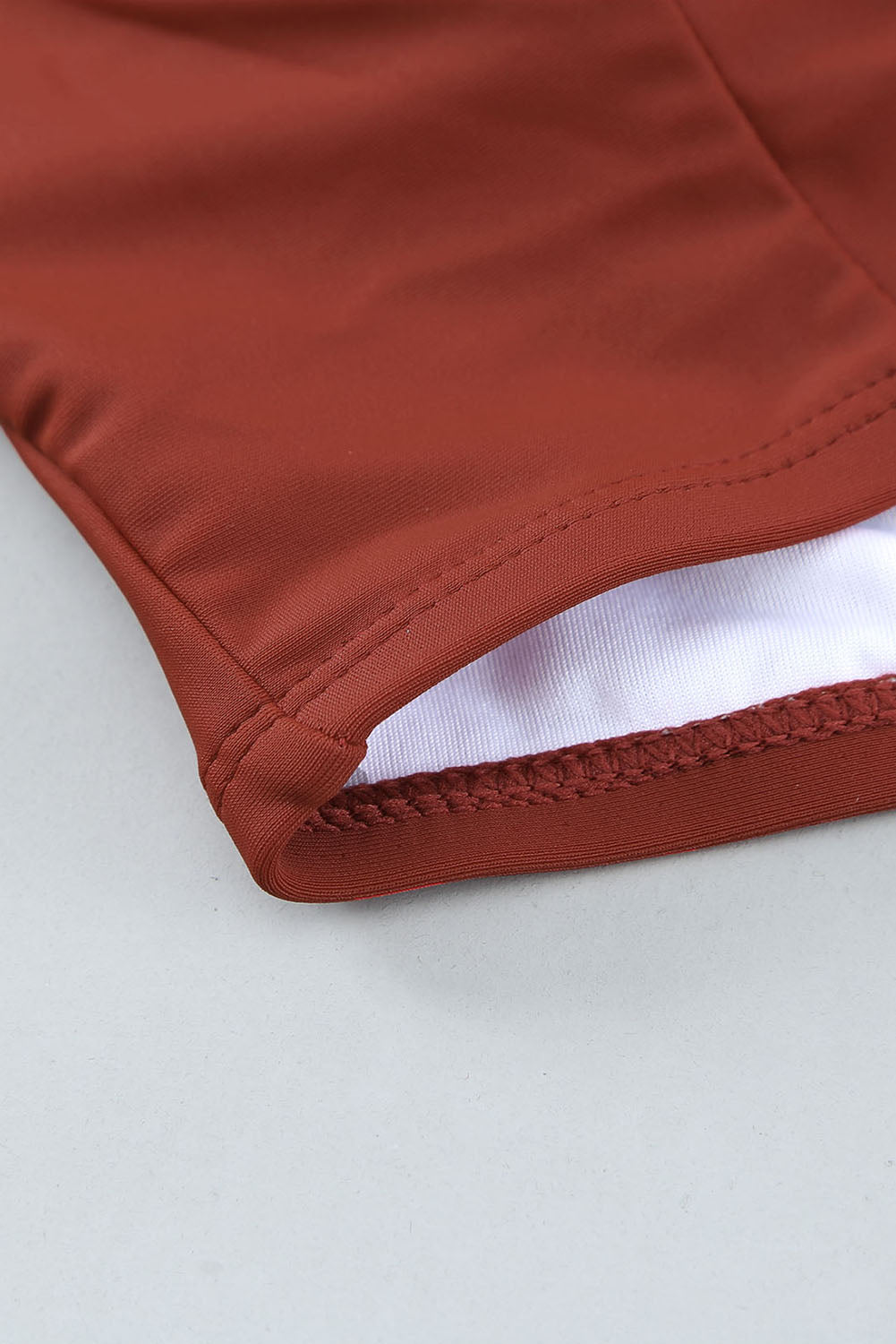Get on point with your swimwear look with this high neck bikini top that features strappy detailing at the front and an adjustable straps can be worn straight or crossed. Carefully underwired for better push-up effect with soft sponge cups. And hide some tummy but show off your hips in the matching bottom. It has a high waist and delicate pleated detail. A flattering look in the two-piece bathing suit.