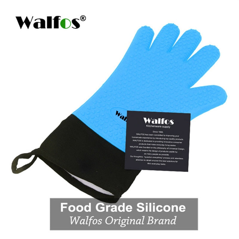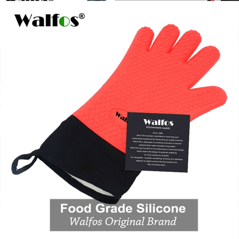 MULTIPURPOSE VERSATILITY: The most versatile kitchen tool for baking, cooking and grilling, WALFOS glove be used inside the kitchen for baked goods, by the grill for barbecue chicken, frying a turkey! NON-SLIP GRIP: Each of WALFOS silicone 5-finger gloves comes with textured gripping surfaces to reduce the risk of accidents. Never again worry about slipping plates, hot pans or steamy ovens.