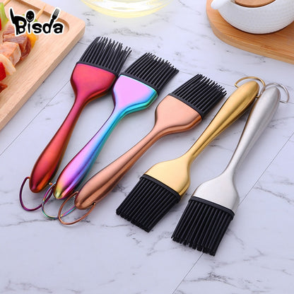1Pc Oil brush Stainless Steel Handle Silcone Brush Gold Oil Pastry Barbecue Grill Tools Kitchen Basting Bakeware