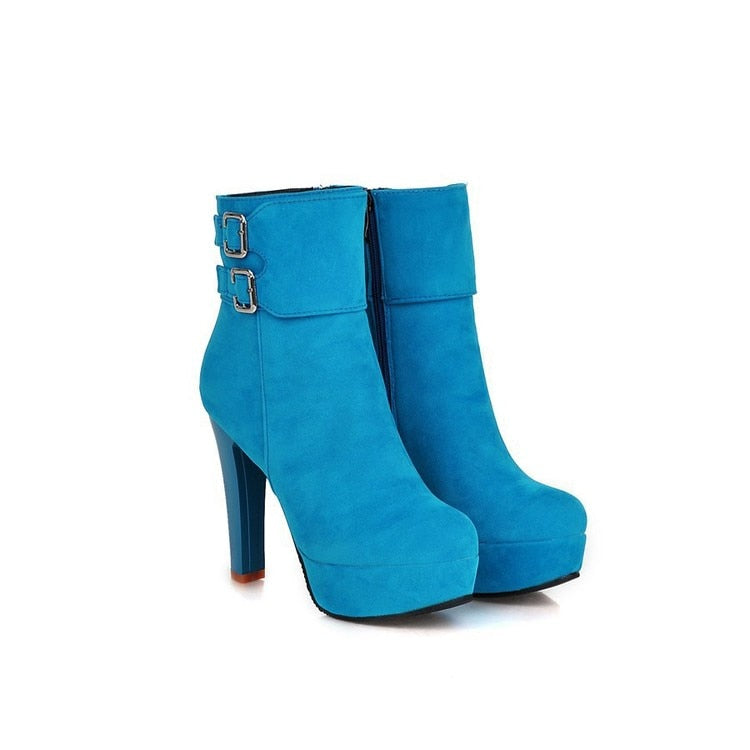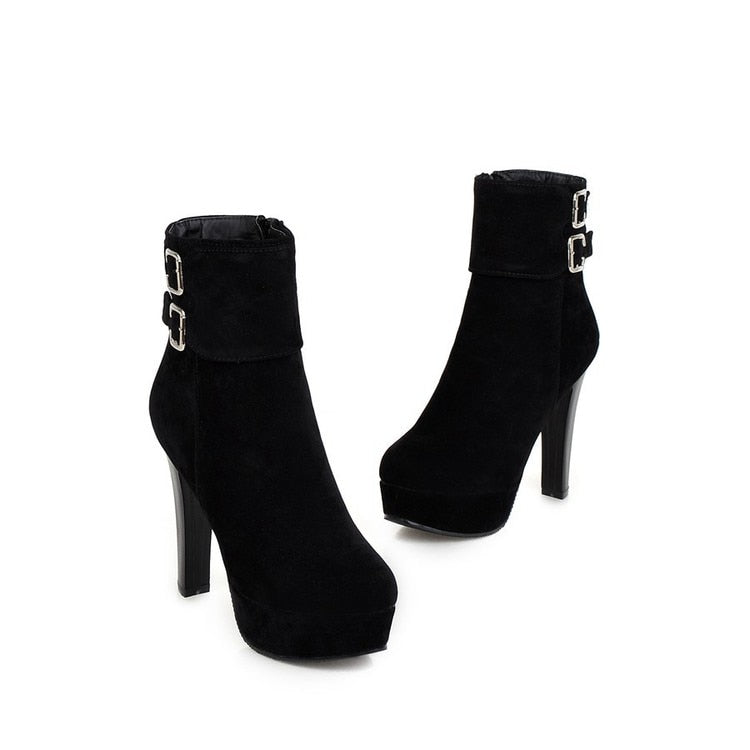Winter Boots Plus Big Size New Round Toe Buckle Boots For Women Sexy Ankle Heels Fashion Winter Shoes Casual Zip Snow 2150