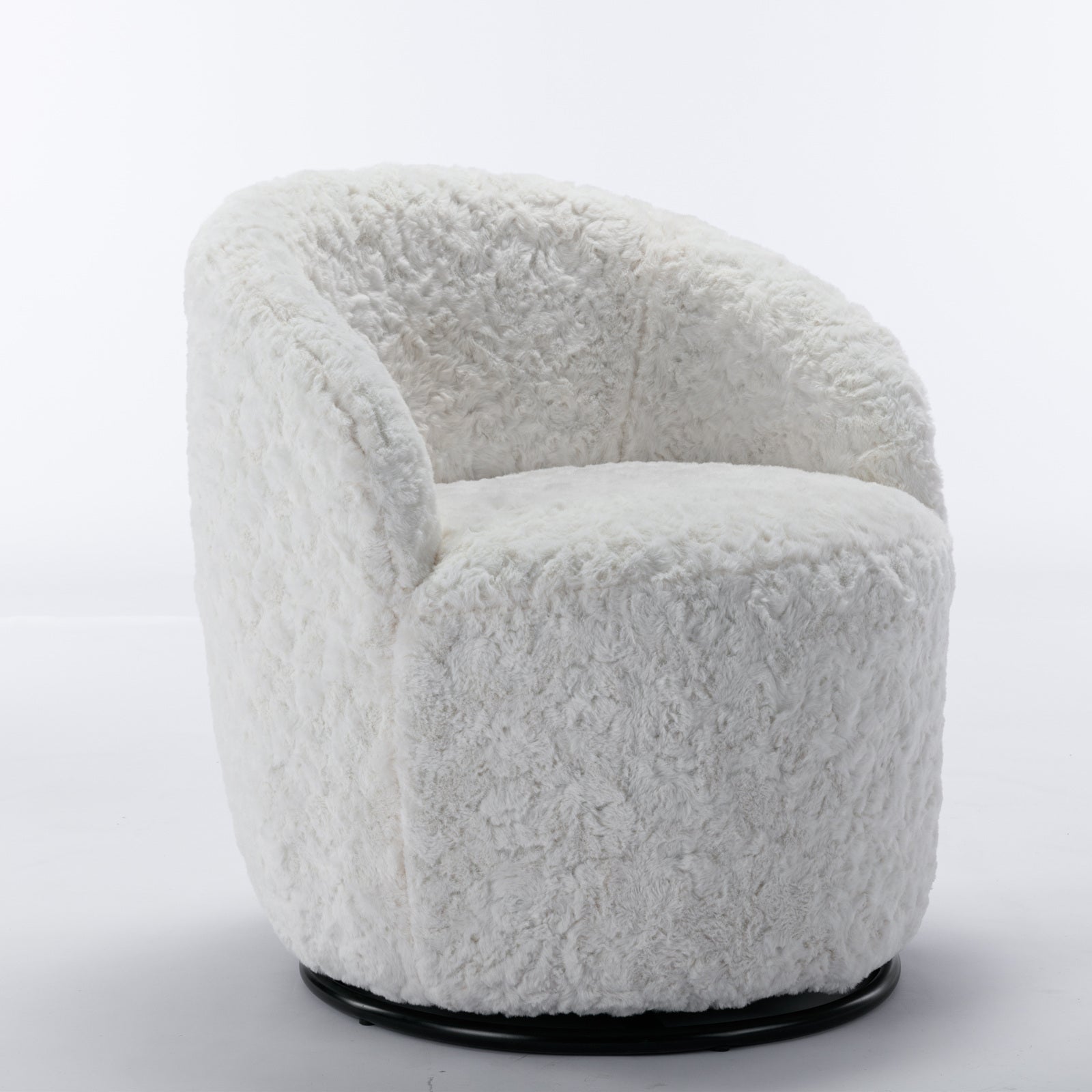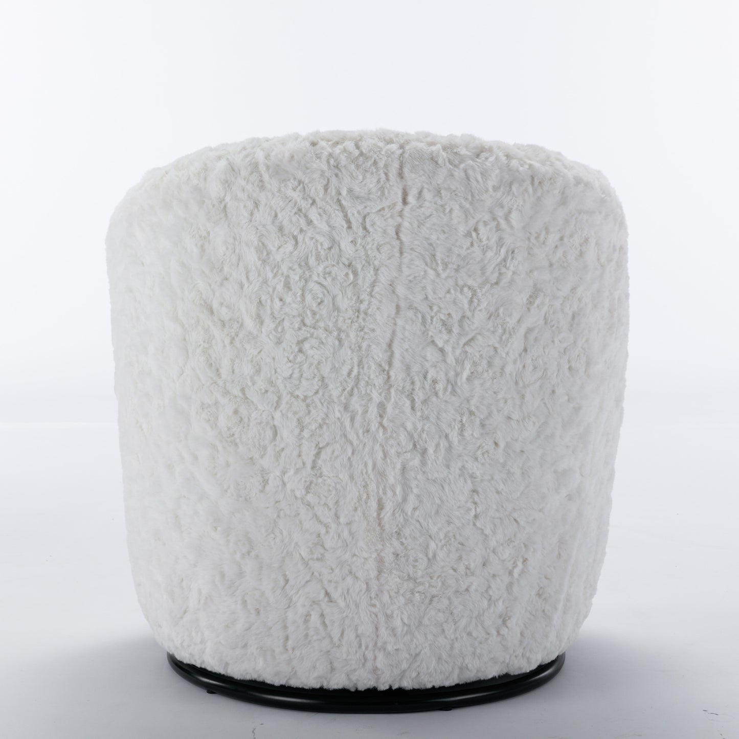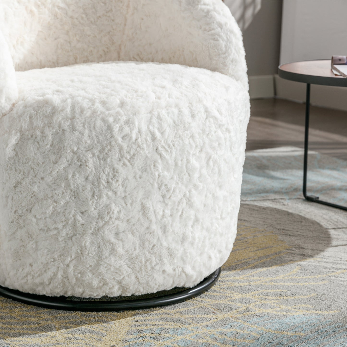 A&A Furniture,Artificial Rabbit Hair Fabric Swivel Accent Armchair Barrel Chair With Black Powder Coating Metal Ring,360° swivel feature make this modern armchair,Ivory White