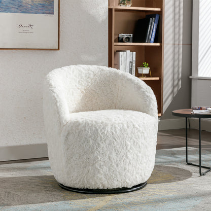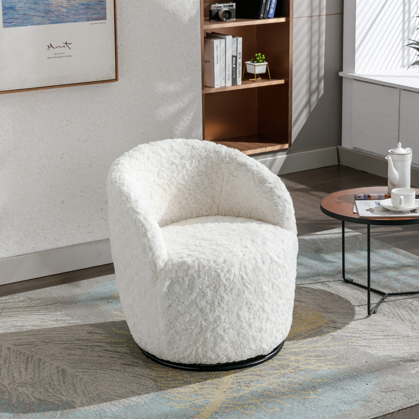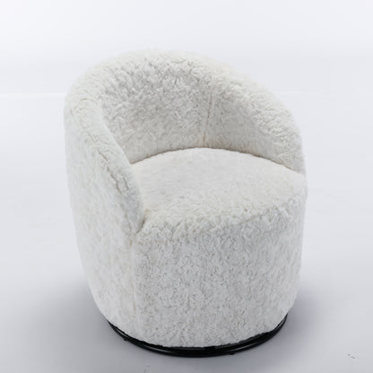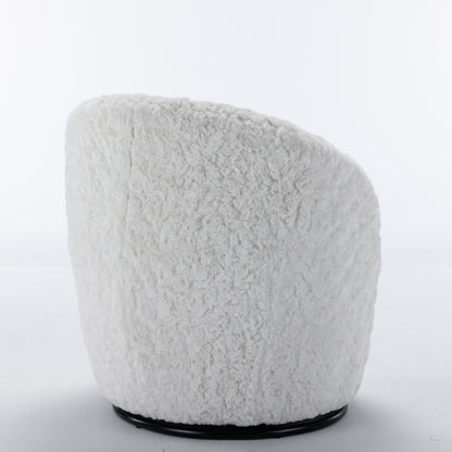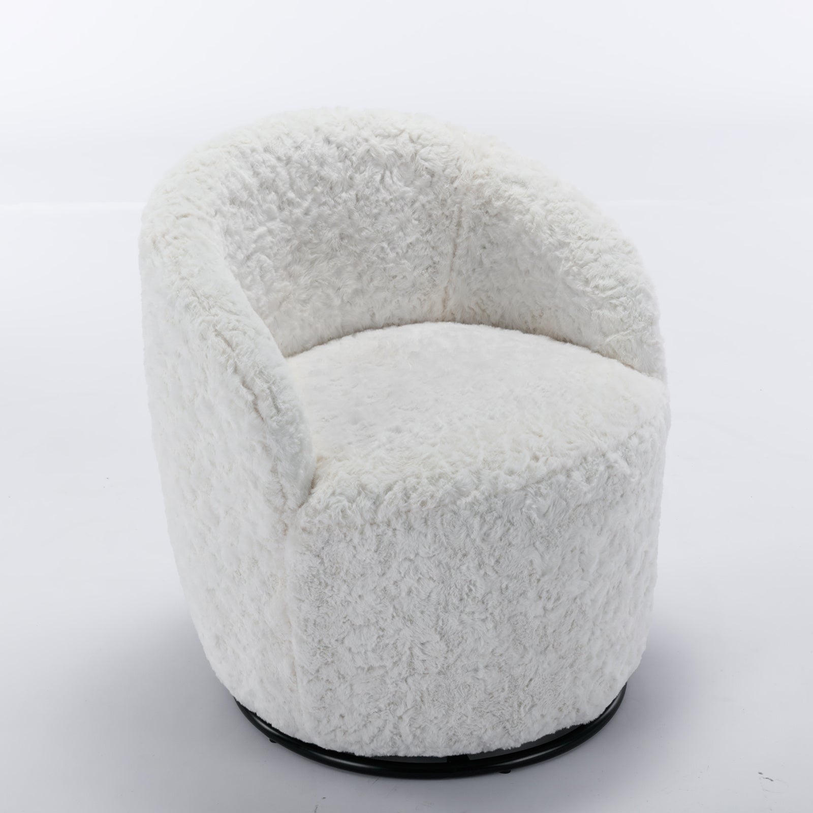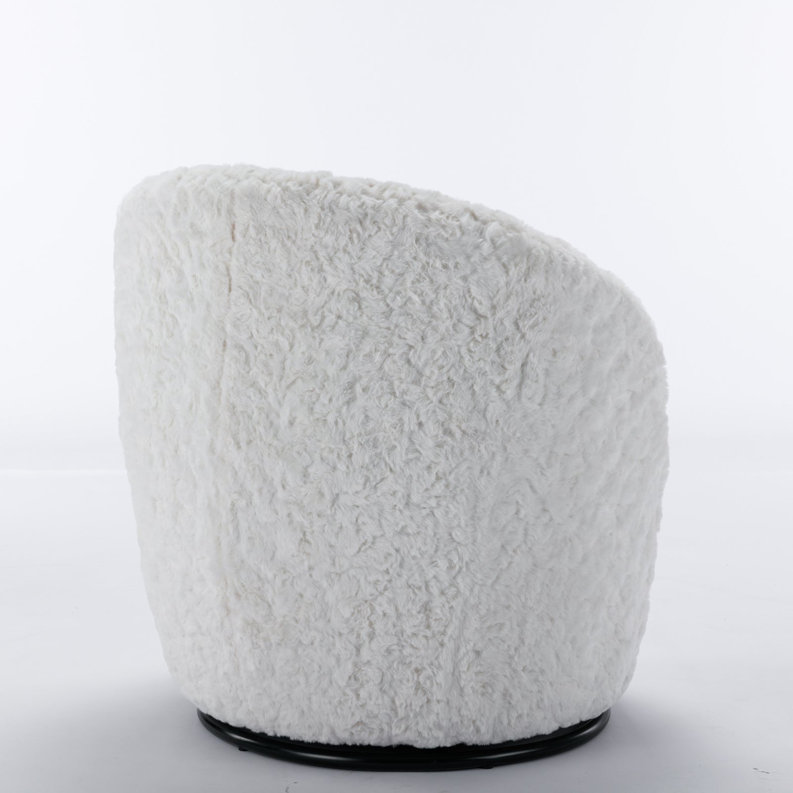 A&A Furniture,Artificial Rabbit Hair Fabric Swivel Accent Armchair Barrel Chair With Black Powder Coating Metal Ring,360° swivel feature make this modern armchair,Ivory White