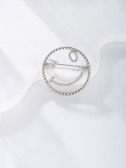 A niche design sense of senior vintage exquisite micro-inset zircon cubic zirconia smiley face bow leaf multi-choice brooch men's women's suit dress banquet dinner casual wear