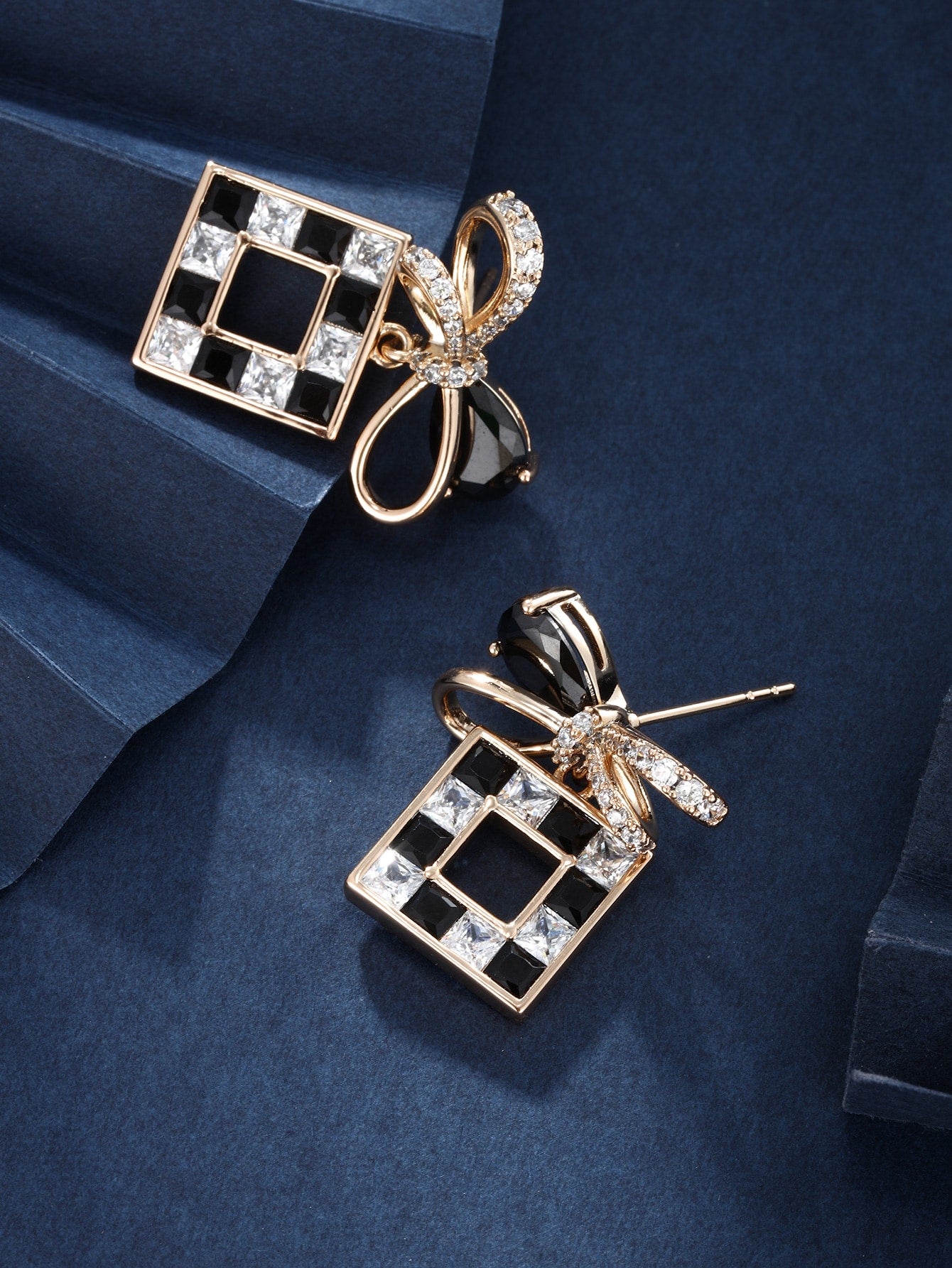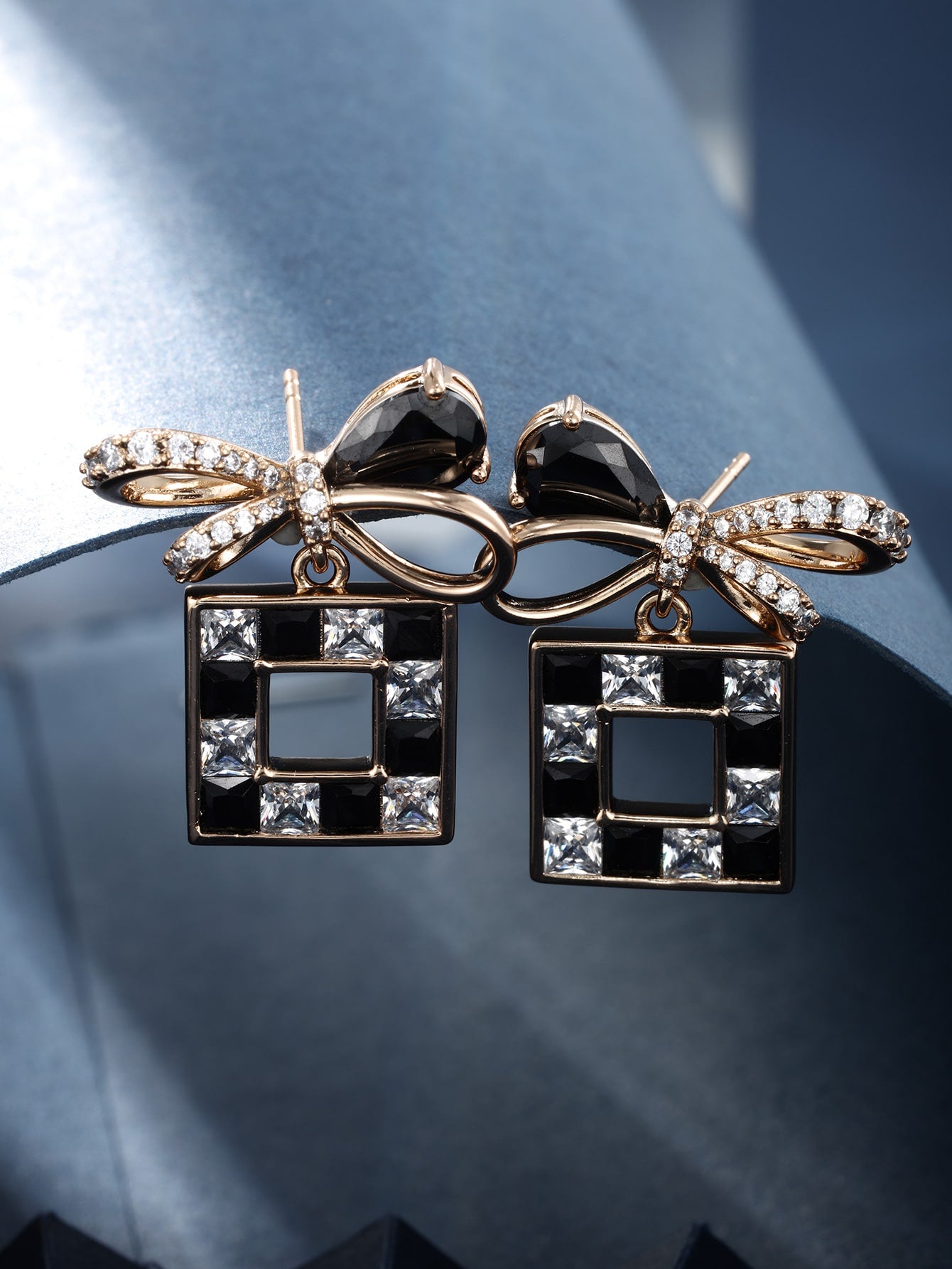 A pair of stylish simple all-in-one imitation jeweled square earrings for women on daily dates for Halloween and Christmas wear