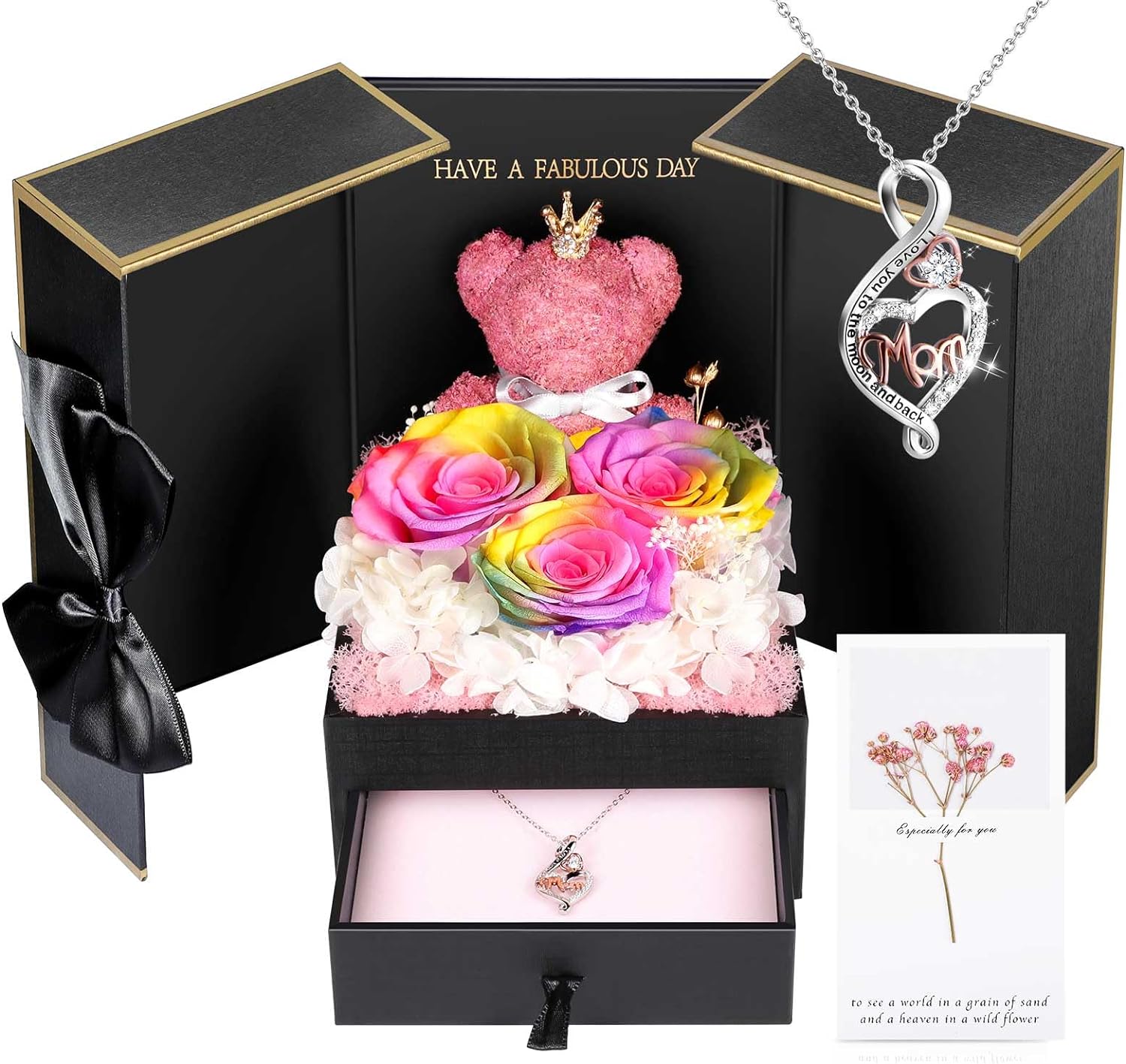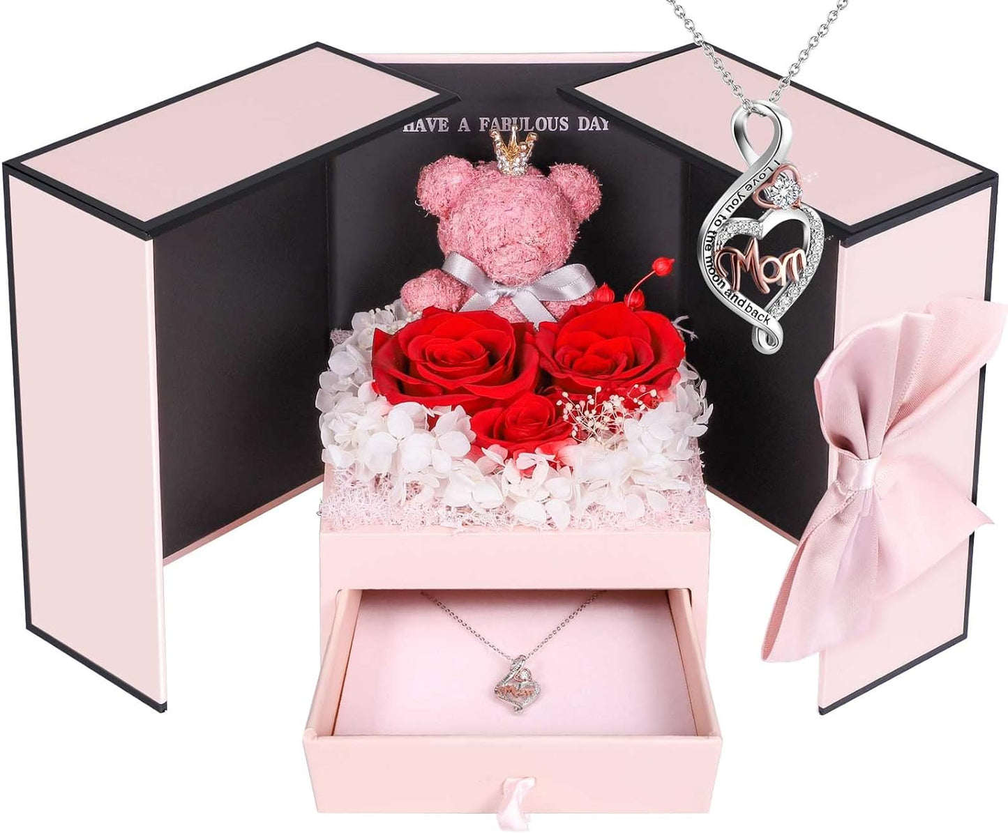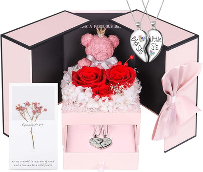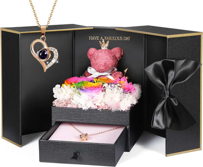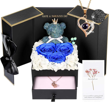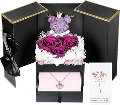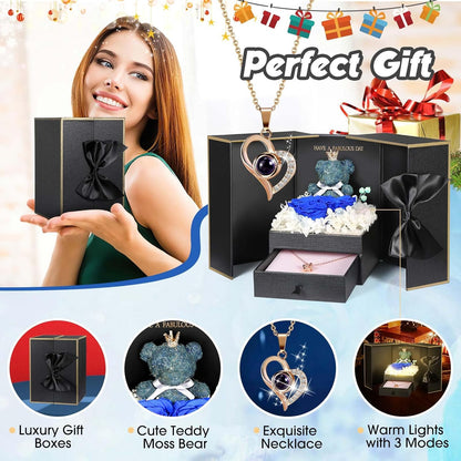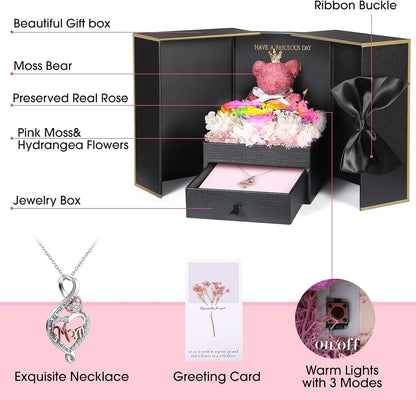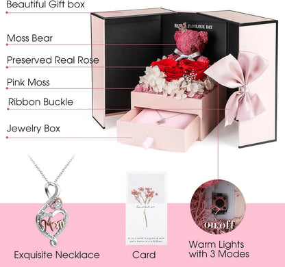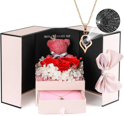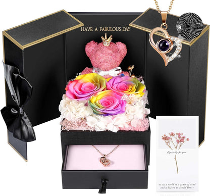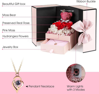 ADDWel Roses Gifts for Women - Unique Preserved Roses Forever Flowers with Necklace Gifts for Girlfriend Wife Mom on Birthday Mothers Day, Valentines Day, Anniversaries, Christmas