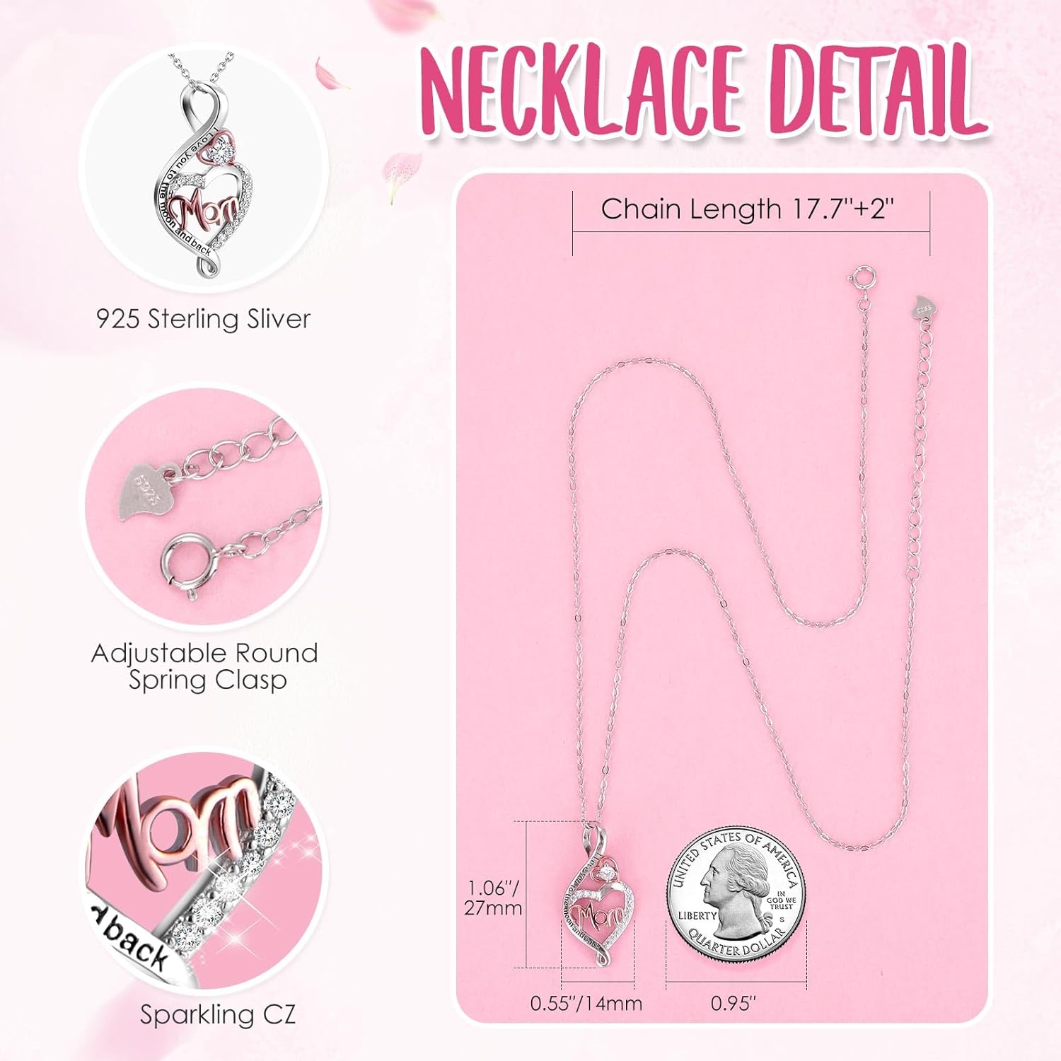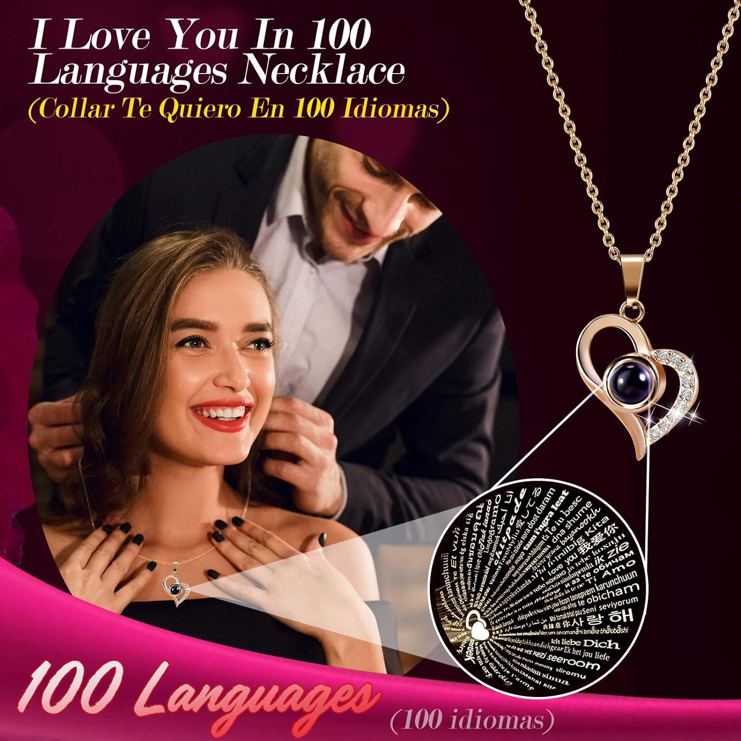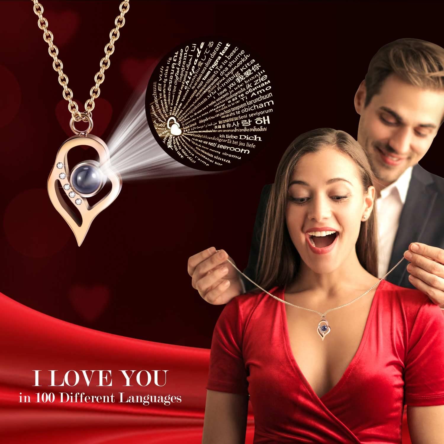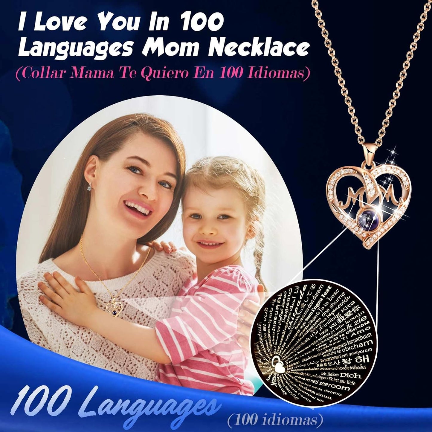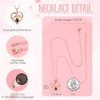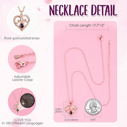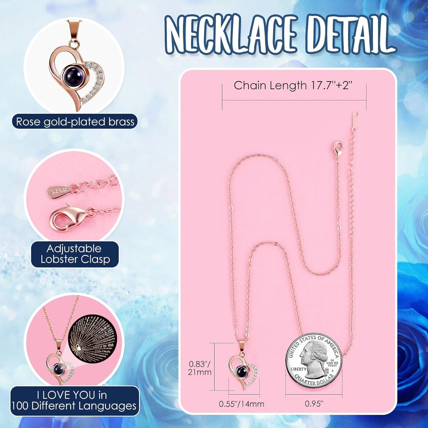 - ❤️ I LOVE YOU 100 Necklace: I LOVE YOU necklace 100 Languages in Hidden inside Bottom of the jewelry box, "which means there are 100 love you ways". The pendant and chain of mom necklace are made of brass with rose gold plating,which are hypoallergenic and have oxidation resistance.The love necklace designed with an 18-inch chain, 2-inch extender, and a adjustable spring ring clasp.They don’t contain lead, nickel, or allergens.