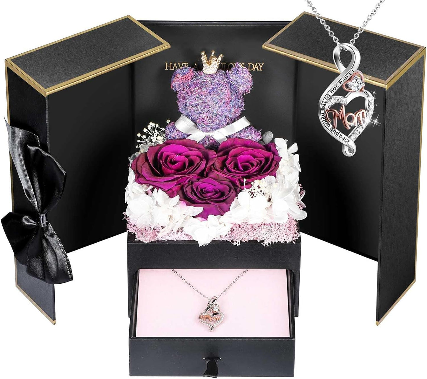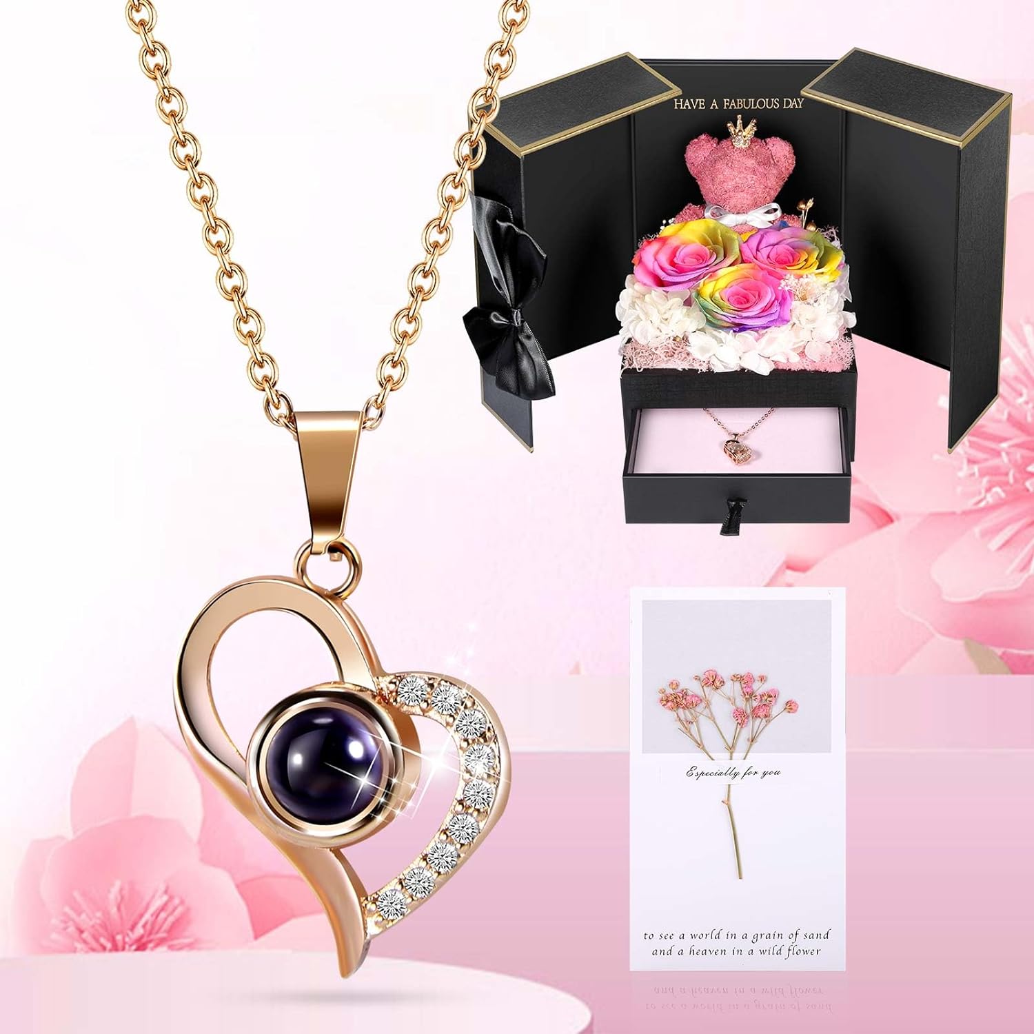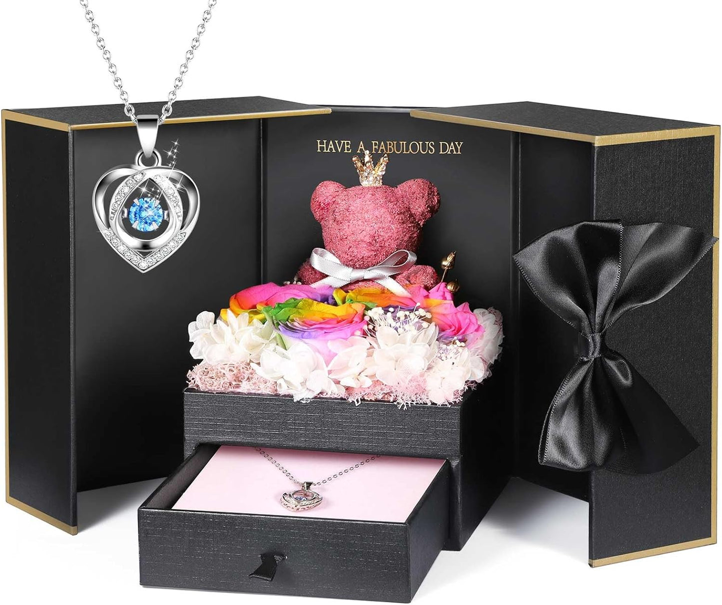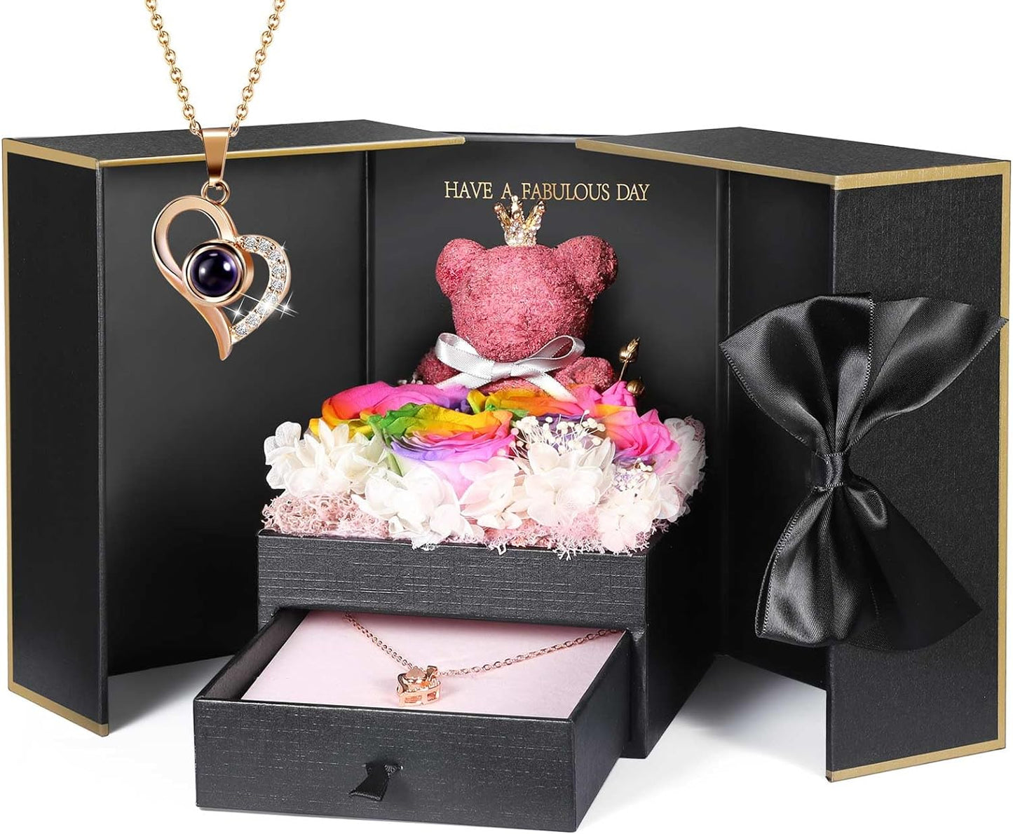 - 💯 Gift Package & After-Sale Service: Preserved roses and love necklace are well wrapped in the gift box, so that you could give directly without spend time on package. As an exquisite luxury gift, it can also store other jewelry. The necklace can be worn, and the rose box can be placed indoors as an ornament. 90 DAYS “NOT ARTIFICIAL DAMAGE” FULL REFUND OR FREE REPLACEMENT GUARANTEE. If there is any problem with our product, don’t hesitate to contact us as soon as possible.