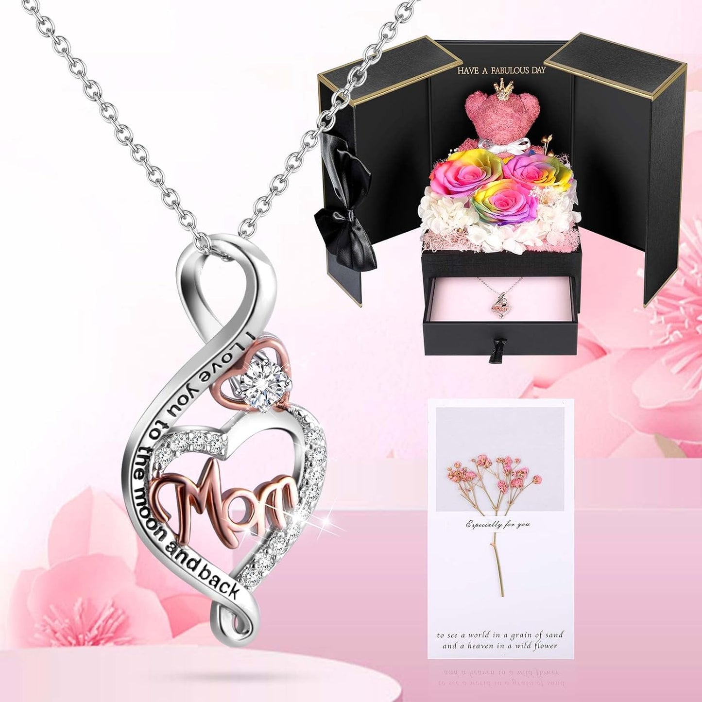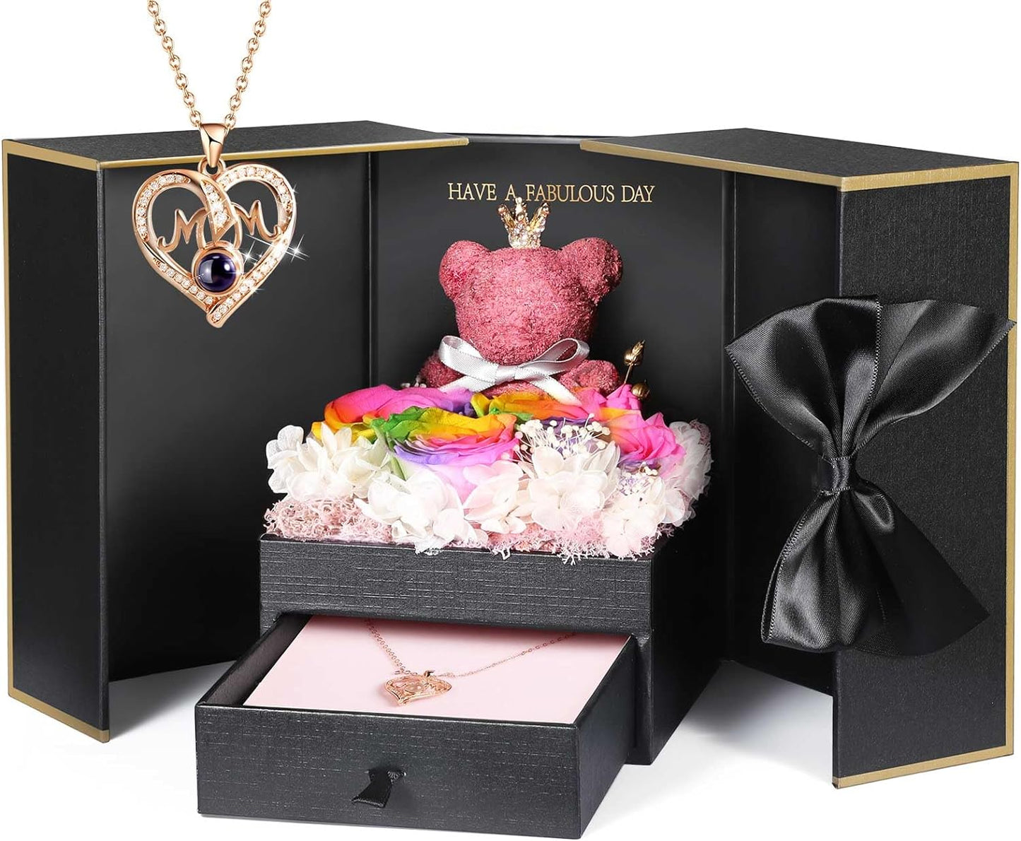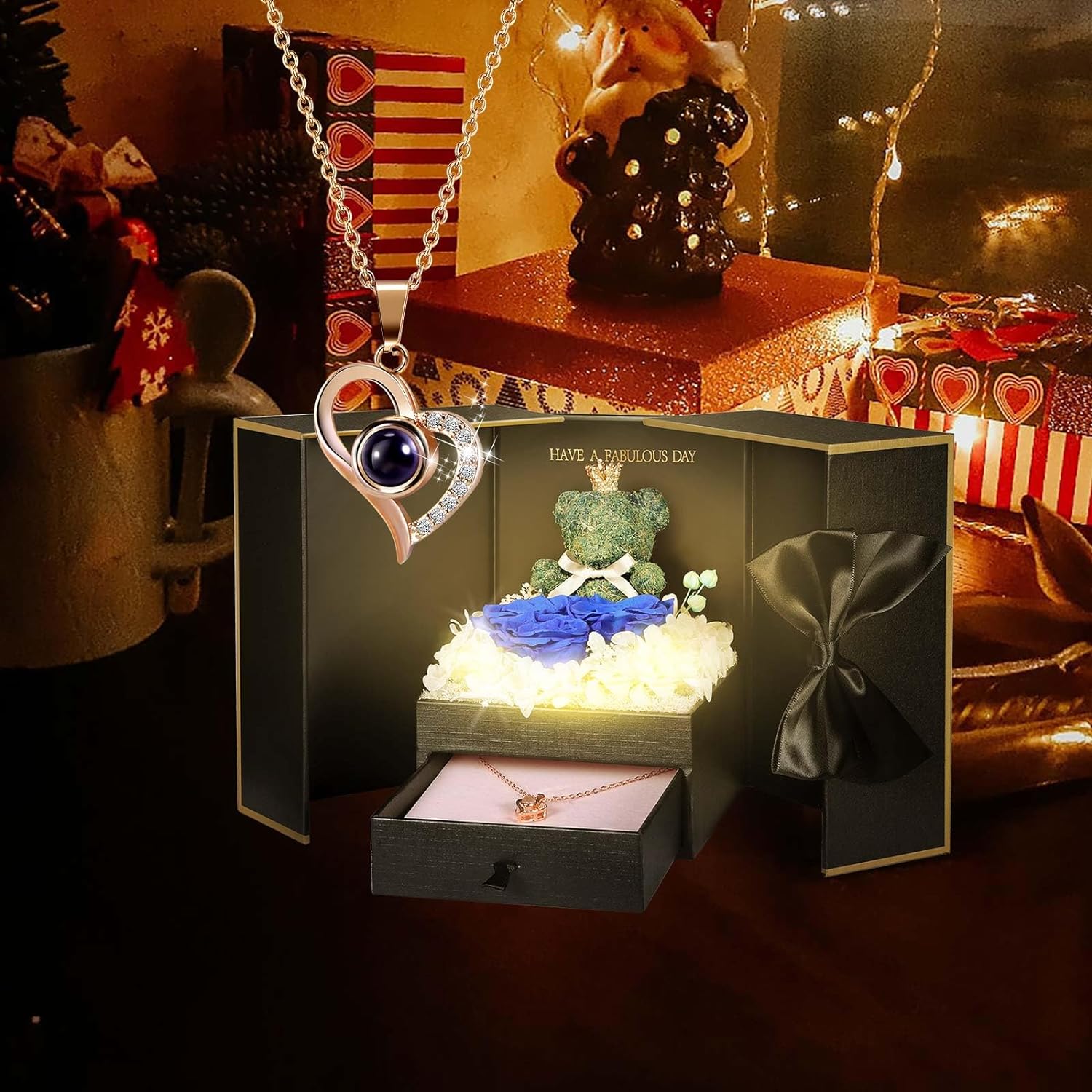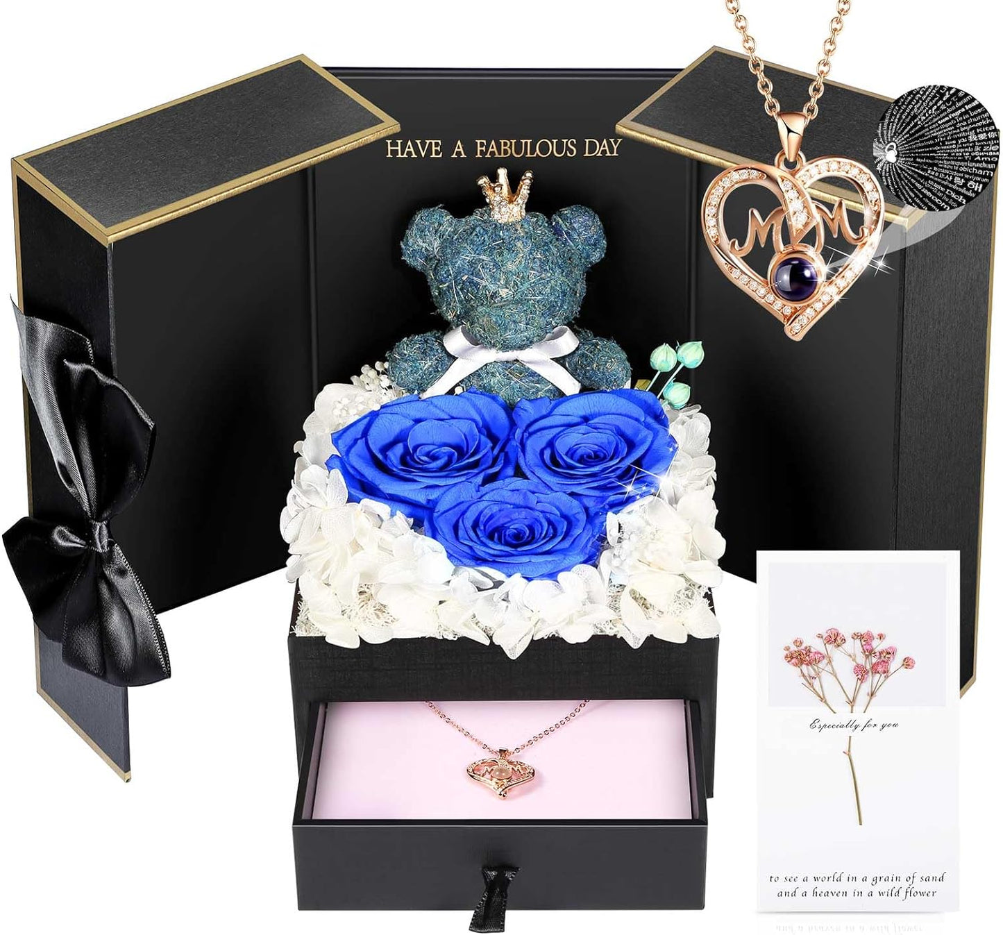 - 💯 Gift Package & After-Sale Service: Preserved roses and love necklace are well wrapped in the gift box, so that you could give directly without spend time on package. As an exquisite luxury gift, it can also store other jewelry. The necklace can be worn, and the rose box can be placed indoors as an ornament. 90 DAYS “NOT ARTIFICIAL DAMAGE” FULL REFUND OR FREE REPLACEMENT GUARANTEE. If there is any problem with our product, don’t hesitate to contact us as soon as possible.