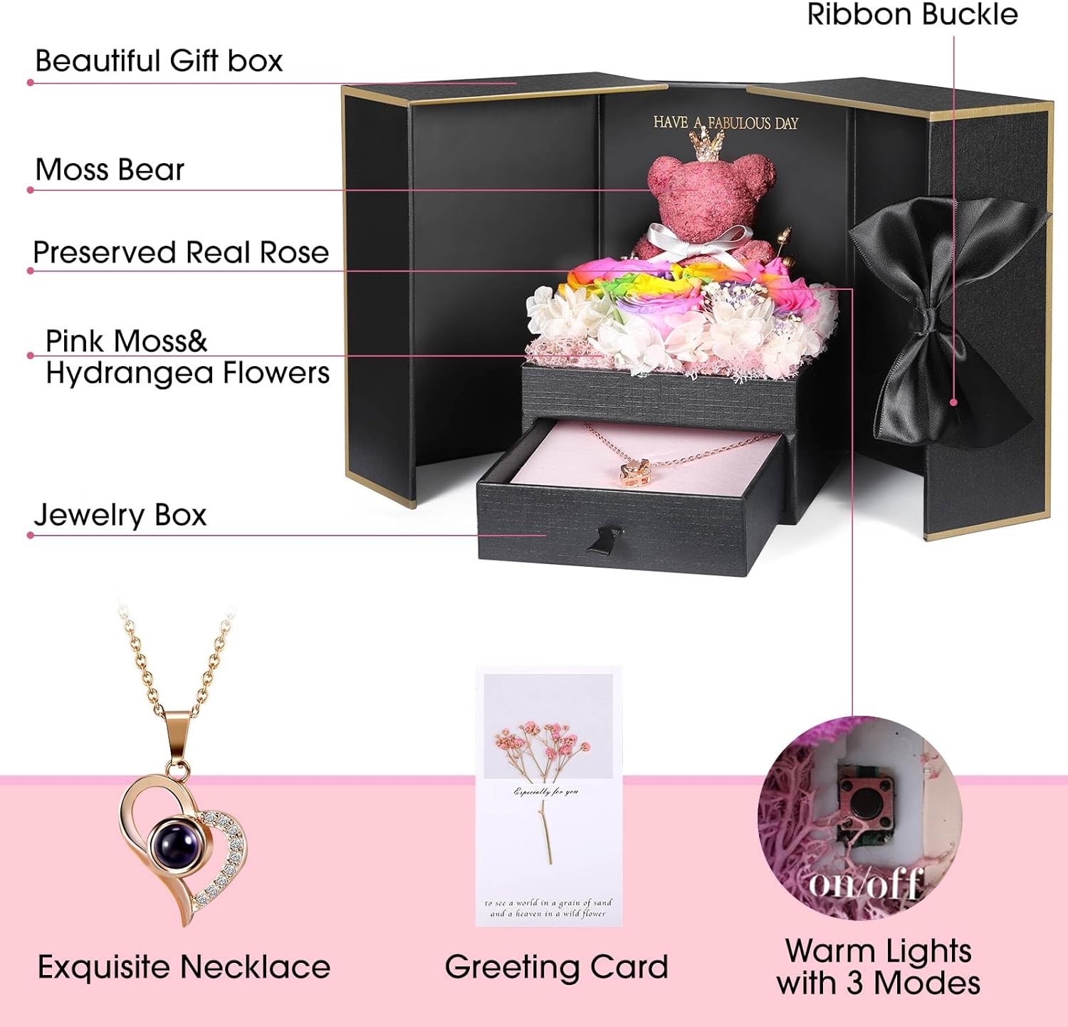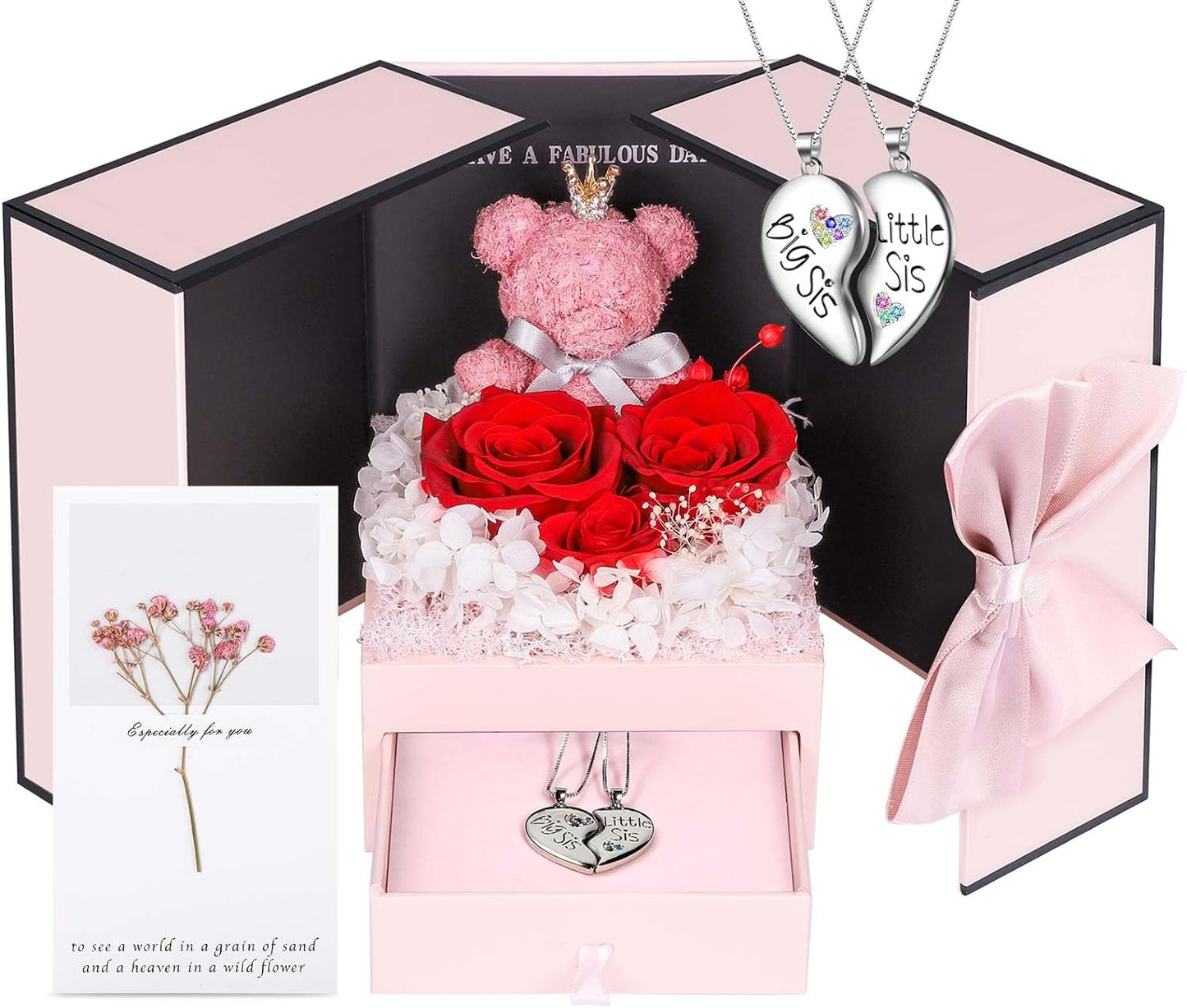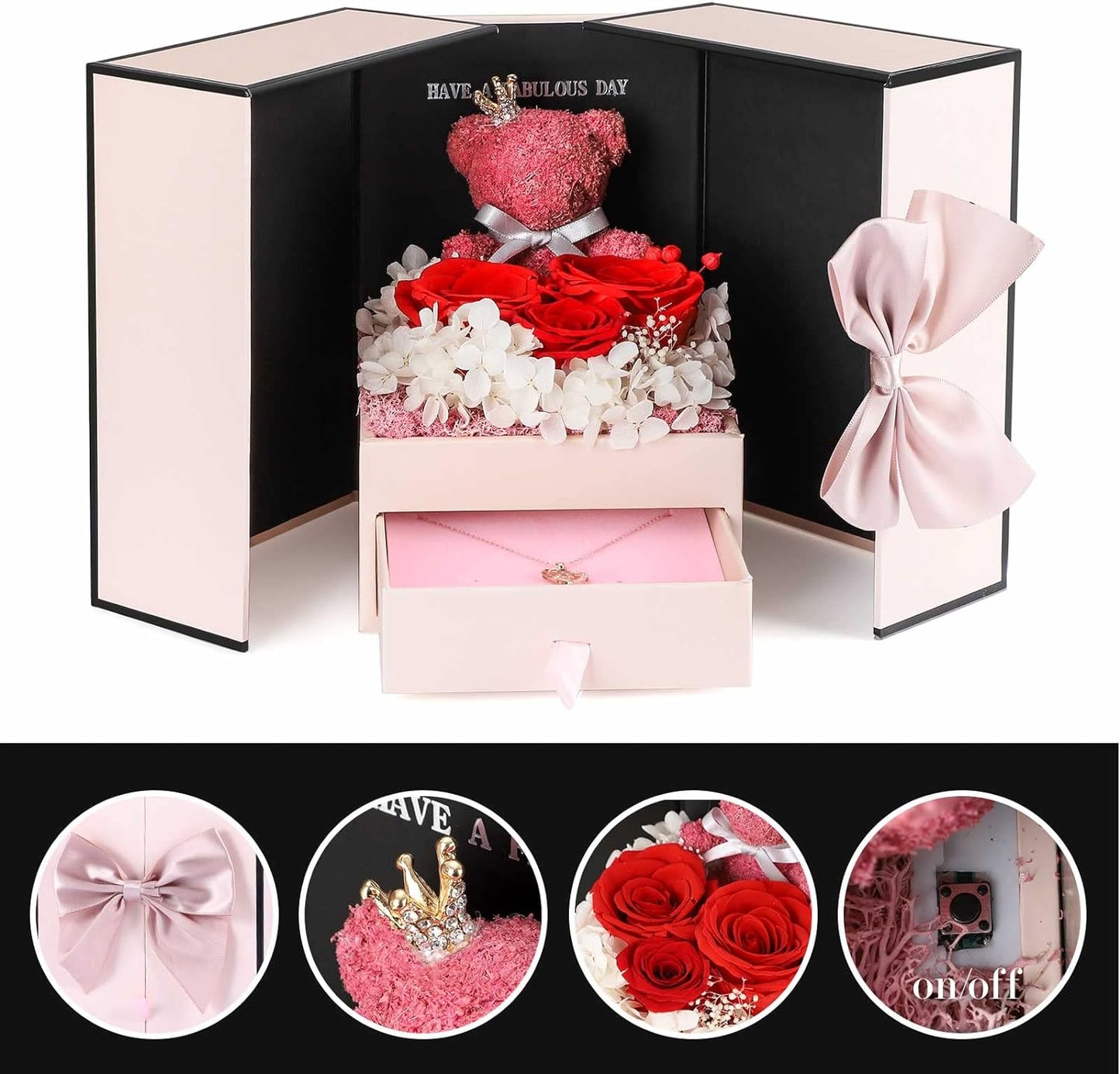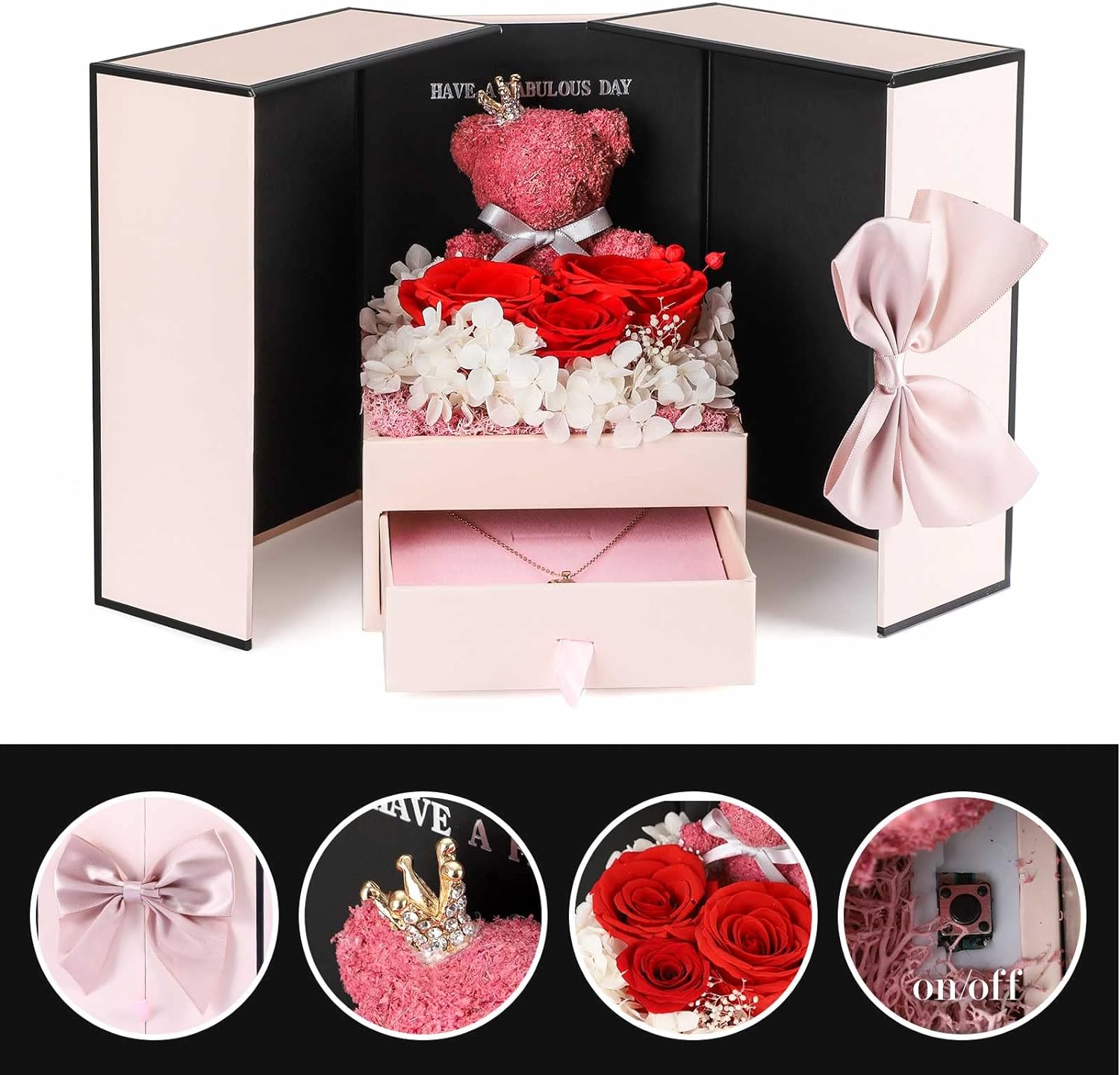 - 💯 Gift Package & After-Sale Service: Preserved roses and love necklace are well wrapped in the gift box, so that you could give directly without spend time on package. As an exquisite luxury gift, it can also store other jewelry. The necklace can be worn, and the rose box can be placed indoors as an ornament. 90 DAYS “NOT ARTIFICIAL DAMAGE” FULL REFUND OR FREE REPLACEMENT GUARANTEE. If there is any problem with our product, don’t hesitate to contact us as soon as possible.