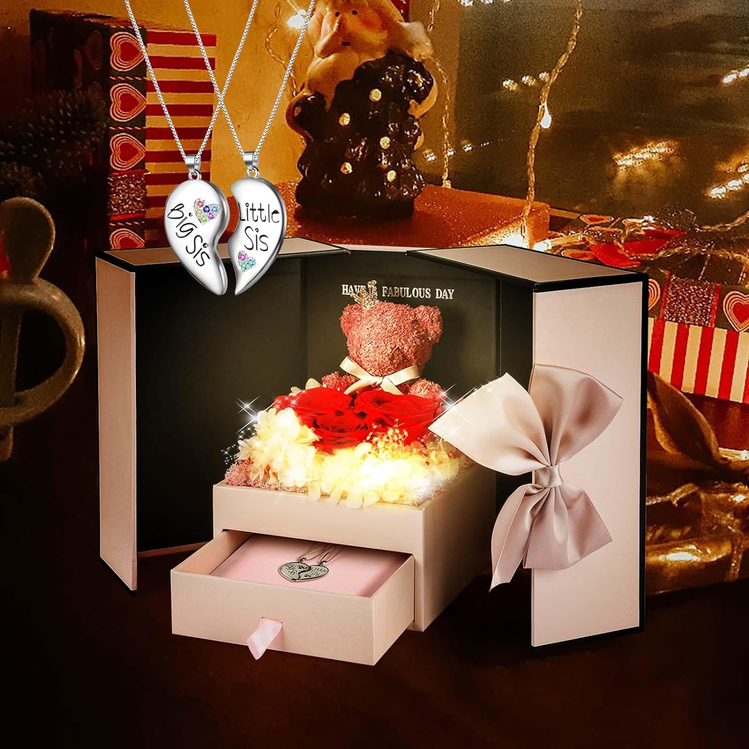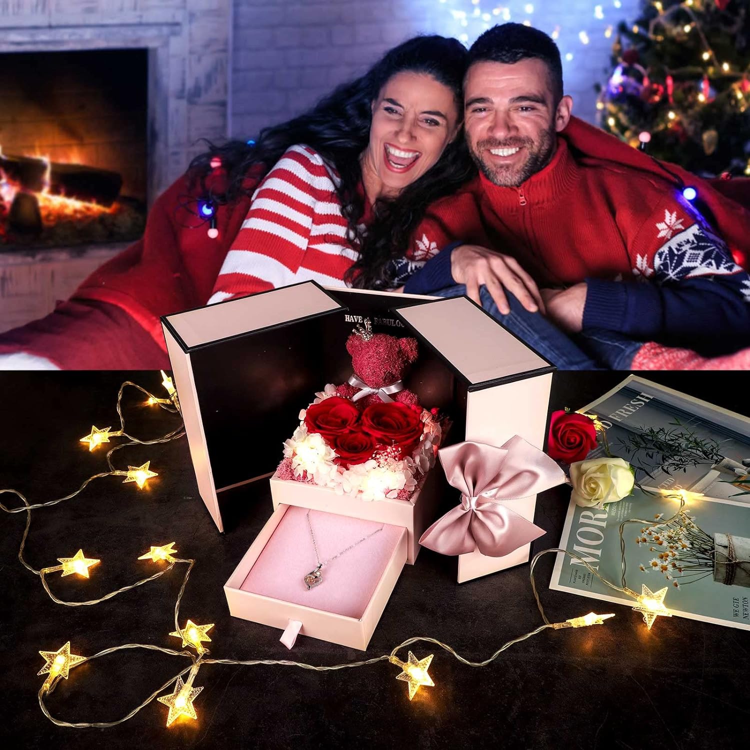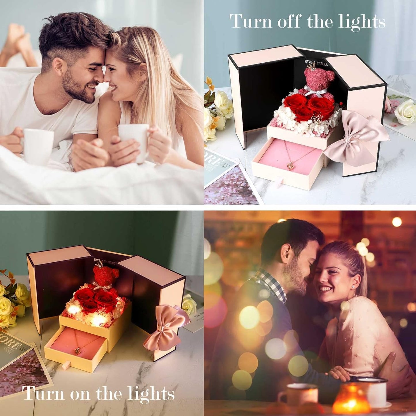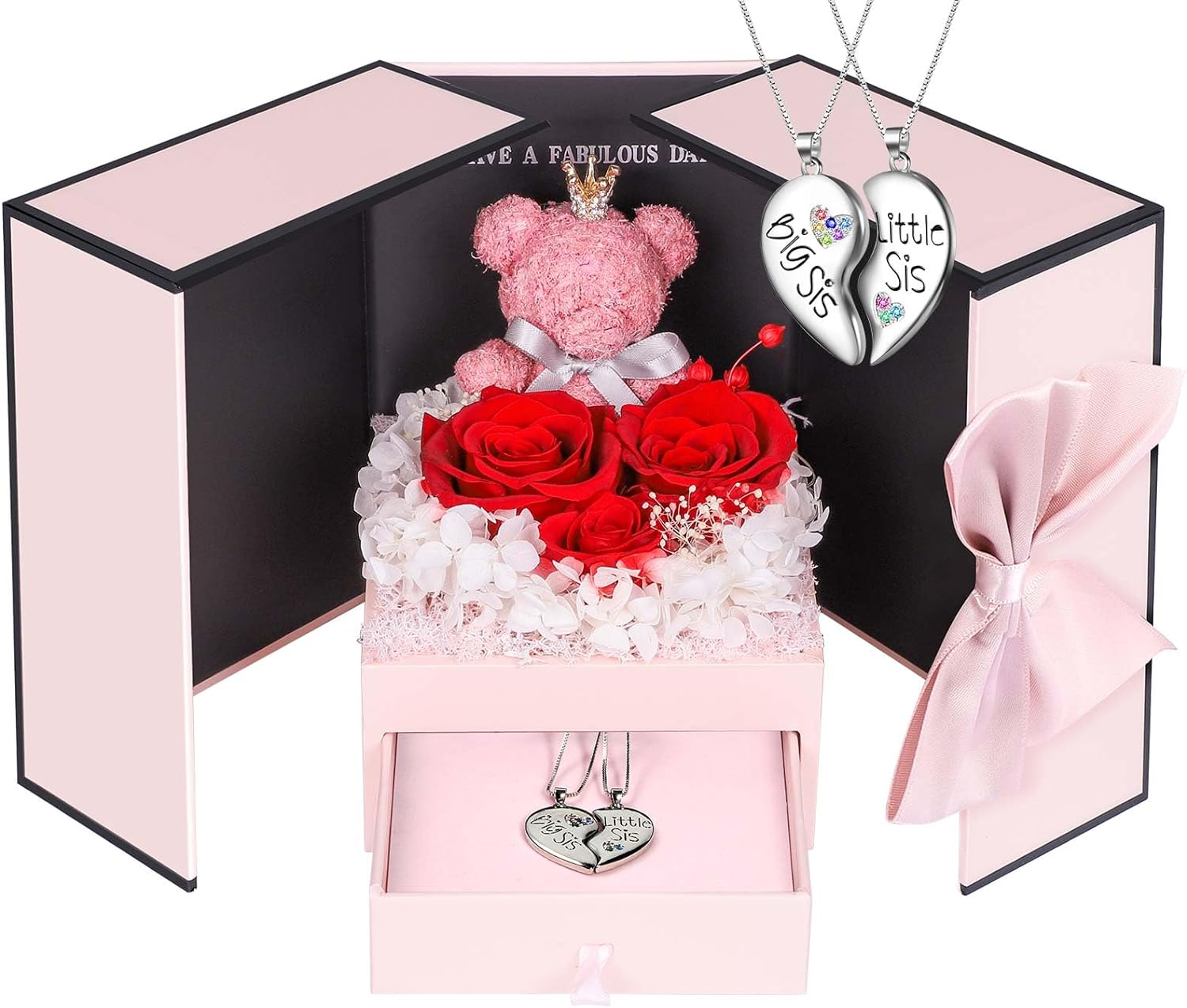 - 💯 Gift Package & After-Sale Service: Preserved roses and love necklace are well wrapped in the gift box, so that you could give directly without spend time on package. As an exquisite luxury gift, it can also store other jewelry. The necklace can be worn, and the rose box can be placed indoors as an ornament. 90 DAYS “NOT ARTIFICIAL DAMAGE” FULL REFUND OR FREE REPLACEMENT GUARANTEE. If there is any problem with our product, don’t hesitate to contact us as soon as possible.