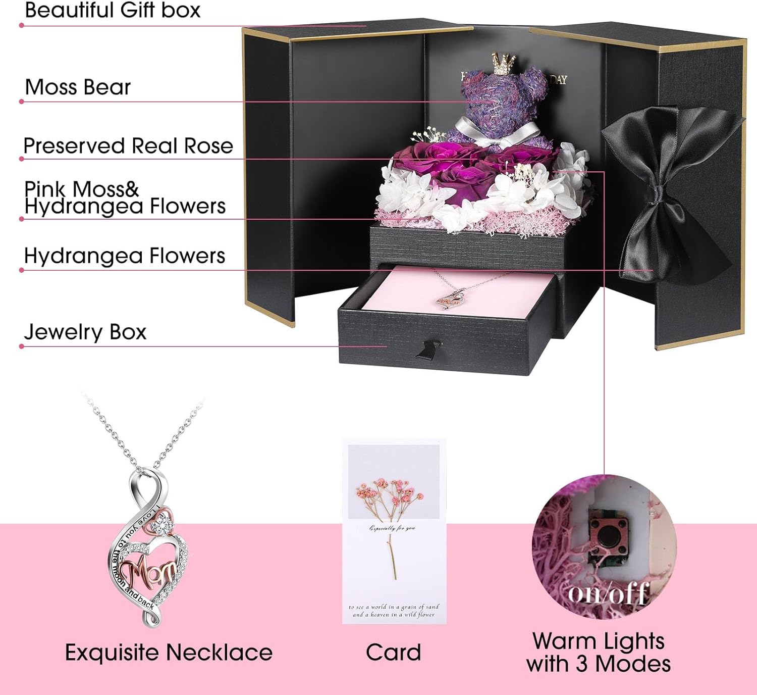 - 🎁 Cute Roses Gifts: ADDWel enchanting Love gift is a cute and unique present for your girlfriend, Wife, Mom, grandma, sister or daughter on special occasions such as Christmas, Mother's Day, Valentine's Day, or anniversaries. The preserved roses symbolize eternal love and make this a meaningful birthday gift as well.