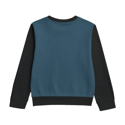 All-Over Print Kid's Round Neck Sweatshirt | 310GSM Cotton Back to School, Composition Notebook Style, Doodles, Scribbles, Writing, Boy, Blue (Designed by Dunbi)