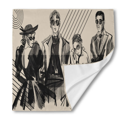 All-Over Print Unisex Silk Bandana Vintage-Modern, Fashion Forward Men & Women, Charcoal Art Style, Geometric, Chic, Stylish, Avant Garde, Runway (Designed by Dunbi)