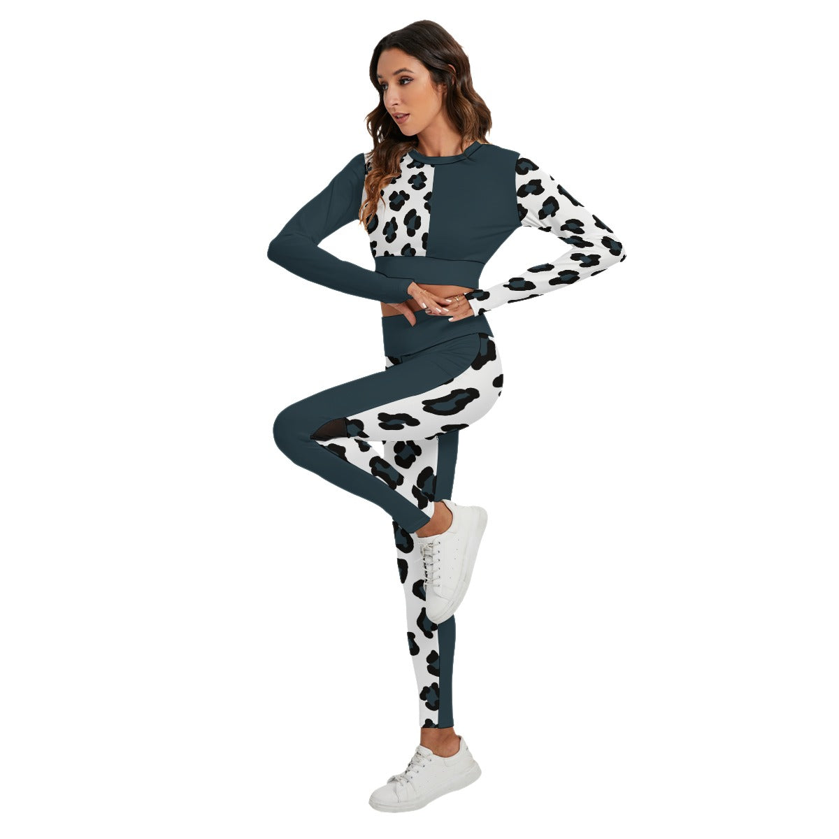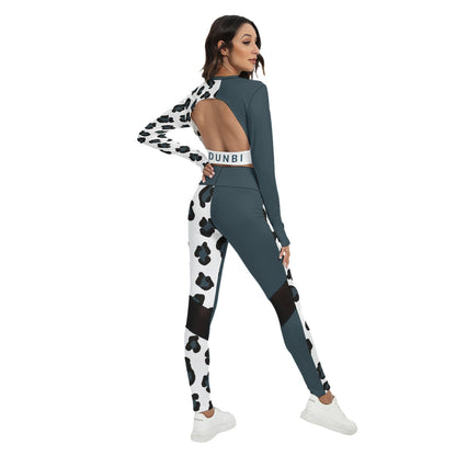 All-Over Print Women's Sport Set With Backless Top And Leggings Blue (Designed by Dunbi)