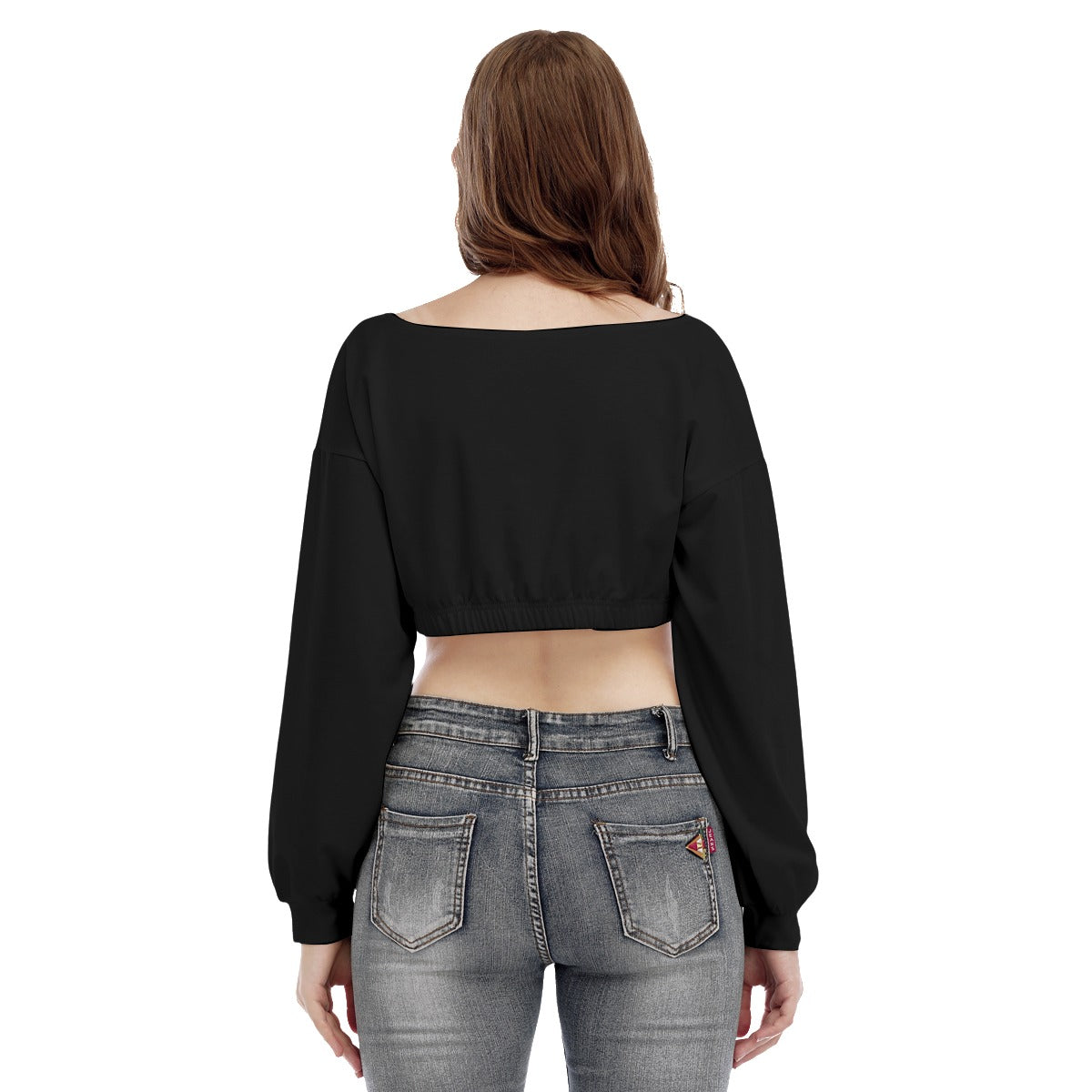 - V-neck, long sleeve, cropped, elastic closure at hem