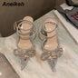 Aneikeh Women's Butterfly-Knot Narrow Band Bling Cross-Tied Crystal Pointed Toe Pumps