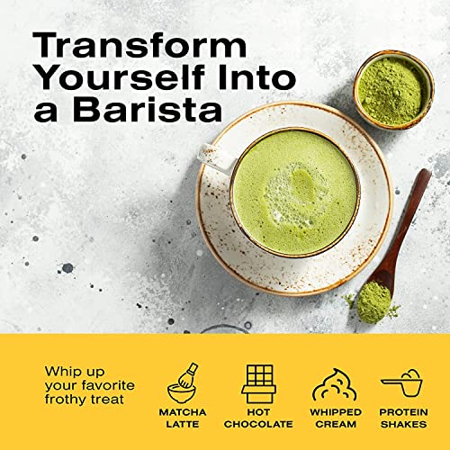 - Multipurpose: This versatile coffee frother expertly whisks a variety of hot and cold beverages including protein shakes, cappuccinos, matcha lattes, macchiatos, and powder drinks. It can even whisk your eggs!