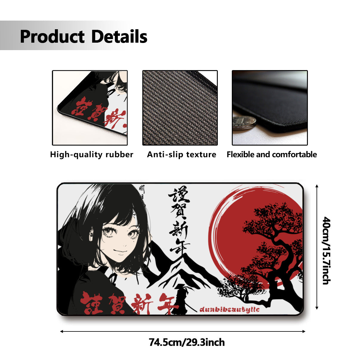 Black Lock Edge Mouse Pad (16×30inch)|Polyester - Japan, Japanese, Red, Samurai, Pretty Girl, Tiger, Kanji, Mountains (Designed by Dunbi)