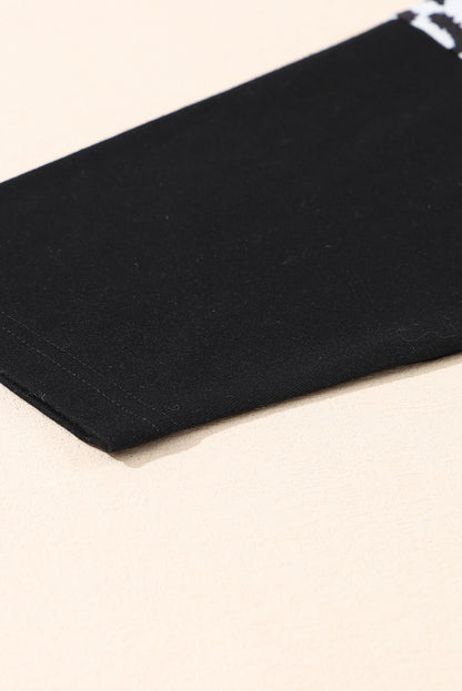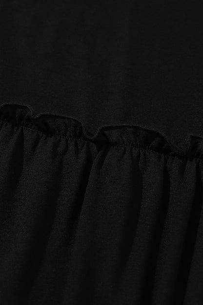 Black Plus Size Striped Leopard Patch Sleeve Ruffle Tiered Dress