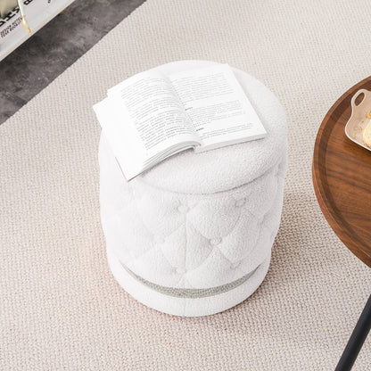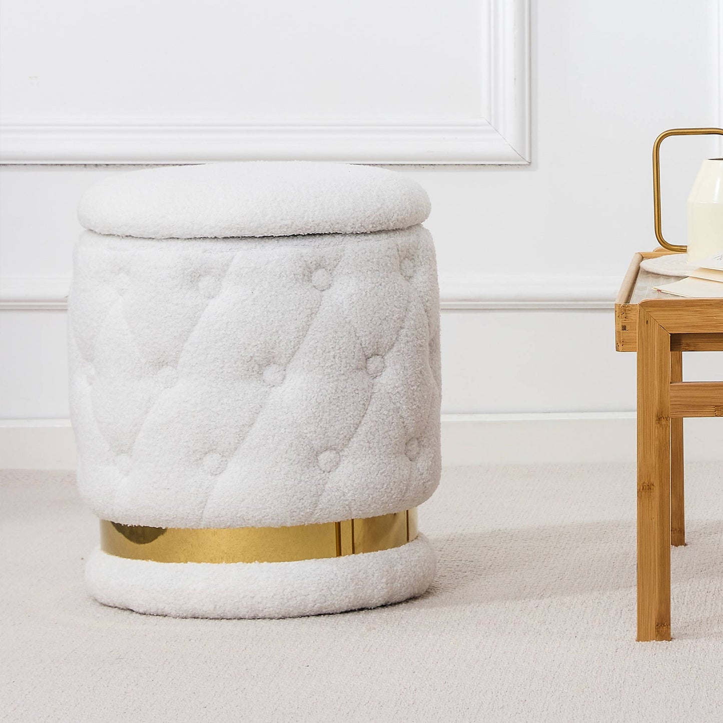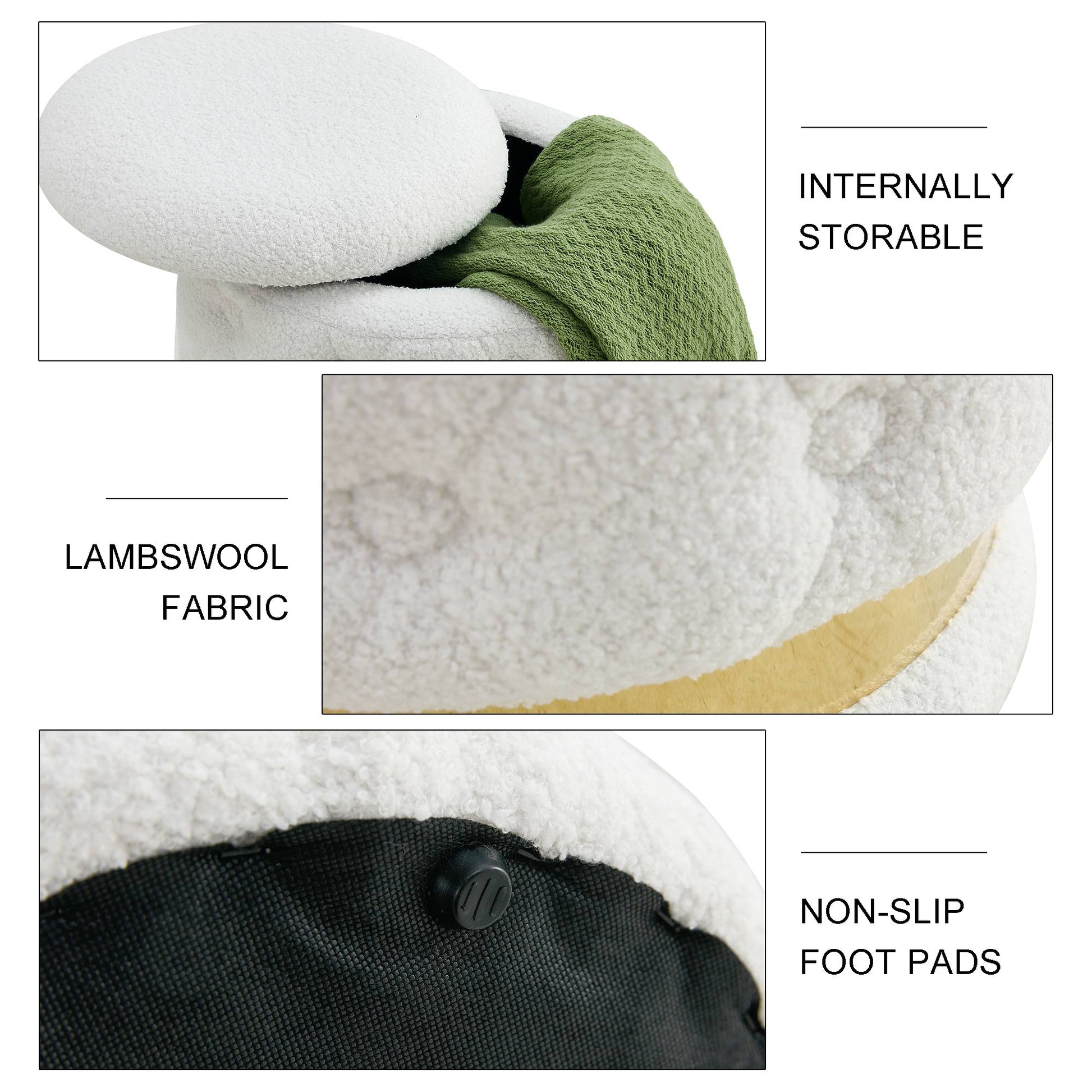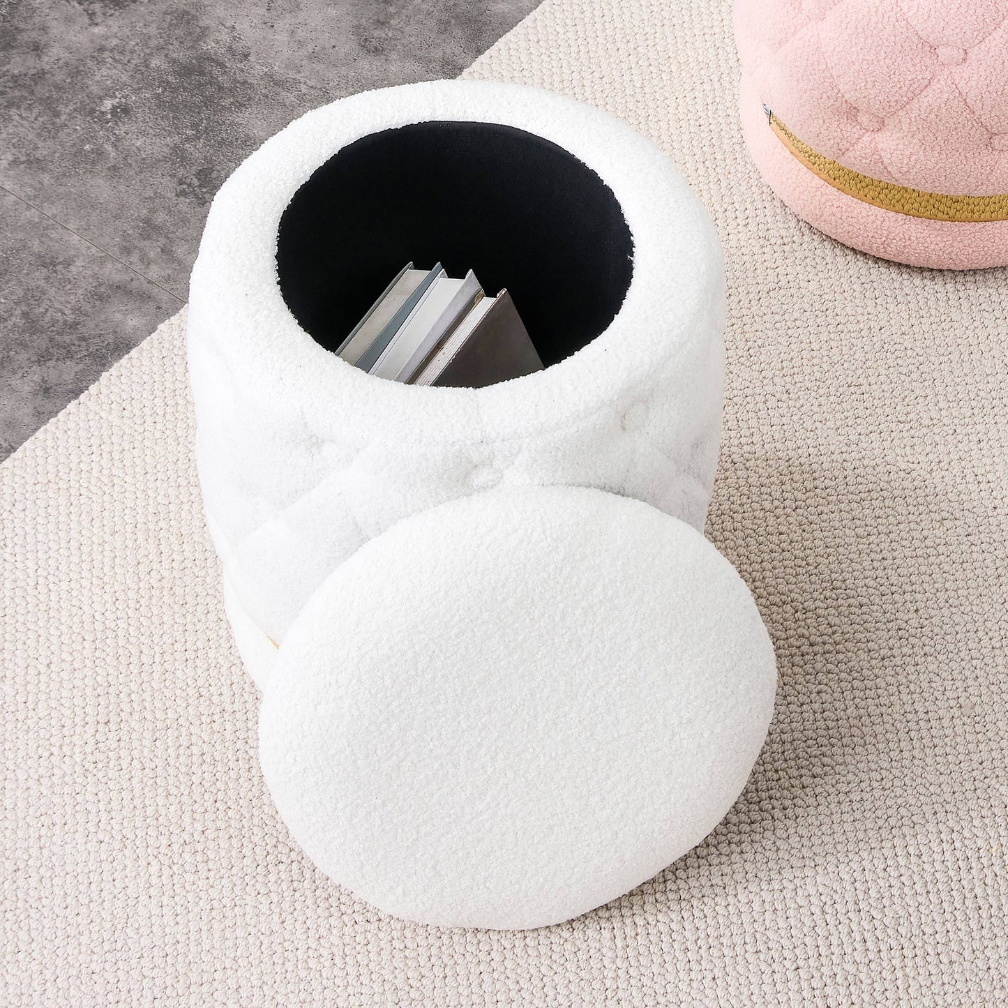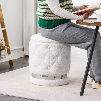 Chair White Round-shape Teddy velvet Makeup Stool Footstool, chair with storage space .Applicable to living room dresser kitchen bedroom dining room