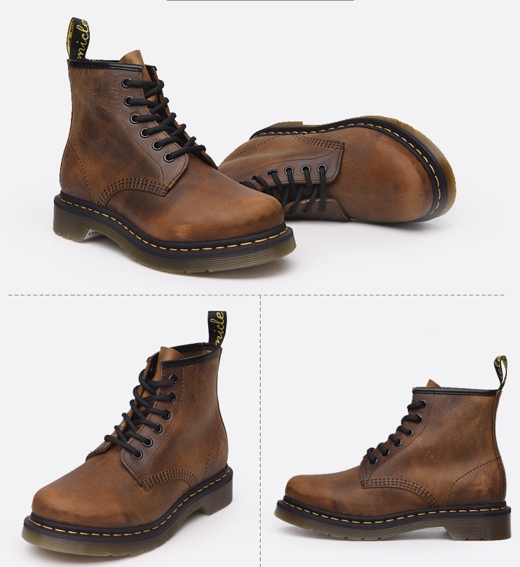 Coffee Crazy Horse Leather High Top Couple Lace Up Outdoor Boots