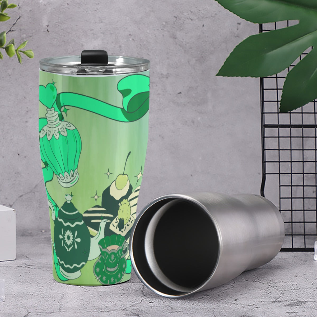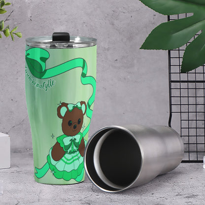 Cone Tumbler 30oz Cute Teddy Bear, Tea Party, Ribbon, Bows, Cakes, Cute, Victorian, Doll, Cute Girl, Green Style 2 (Designed by Dunbi)