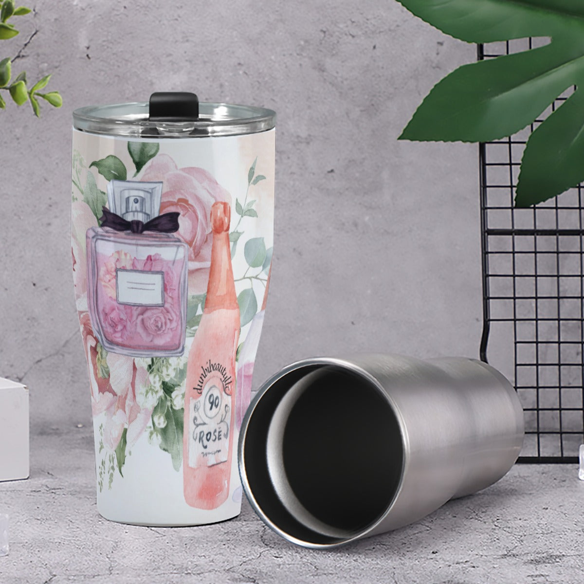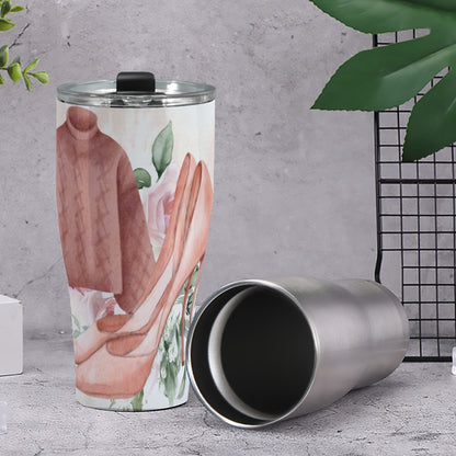 Cone Tumbler 30oz Dusty Rose, Pink, Perfume, High Heels Champagne & Roses, Aesthetic, Feminine, Fashion (Designed by Dunbi)