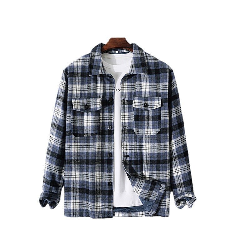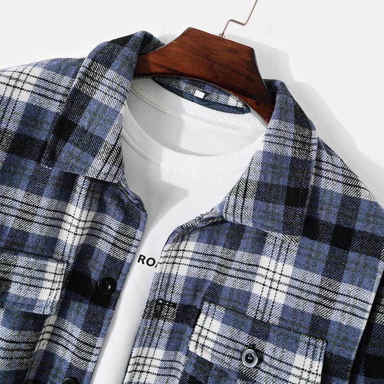 Cross-border Foreign Trade 2021 Autumn And Winter New Men's Woolen Fashion Lapel Long-sleeved Plaid Men's Jacket Amazon