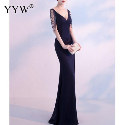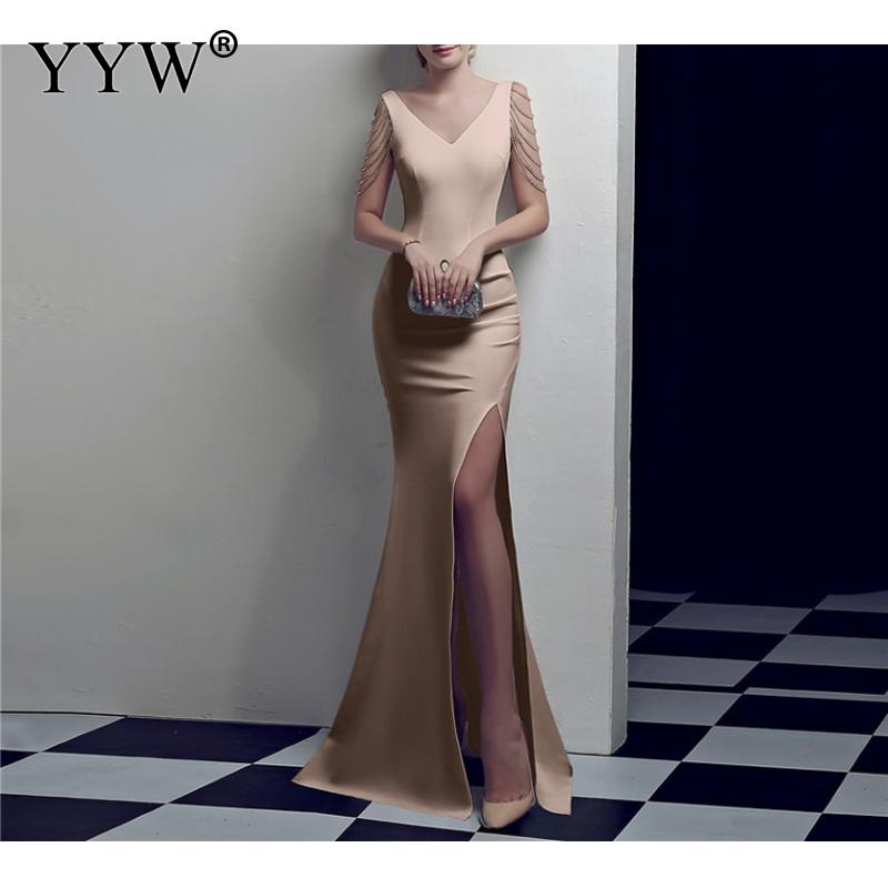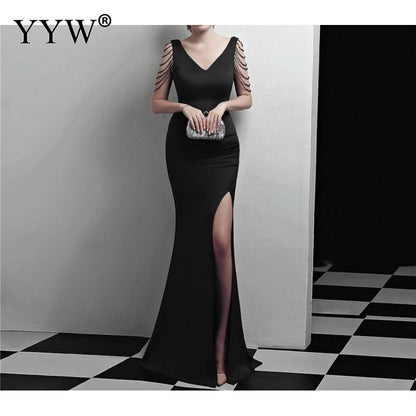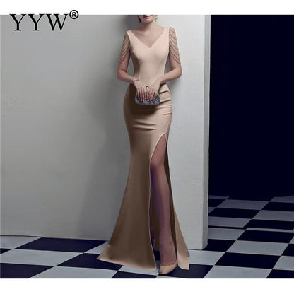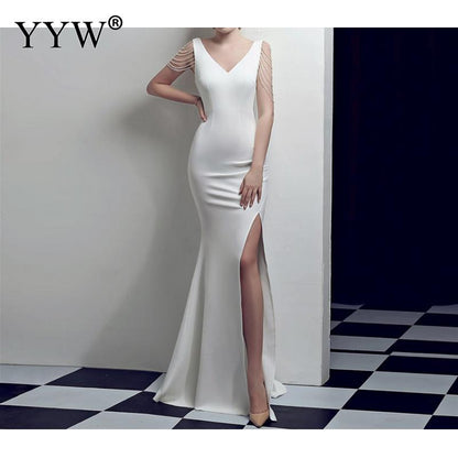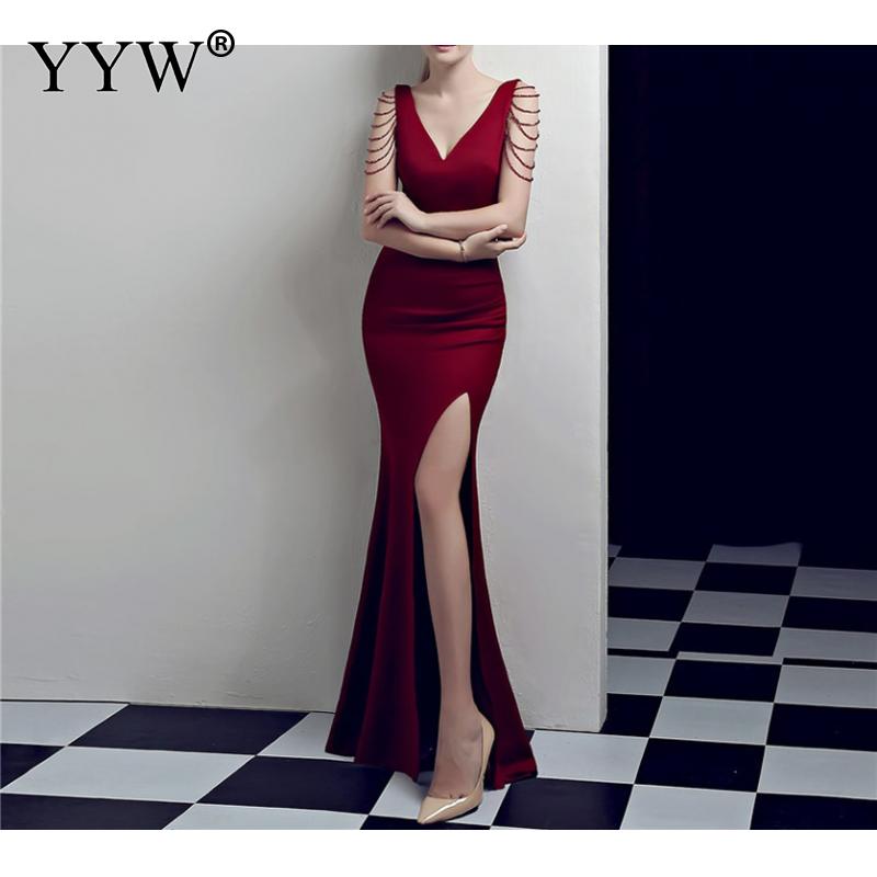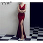 Women's V Neck Sleeveless Evening Dress with High Slit