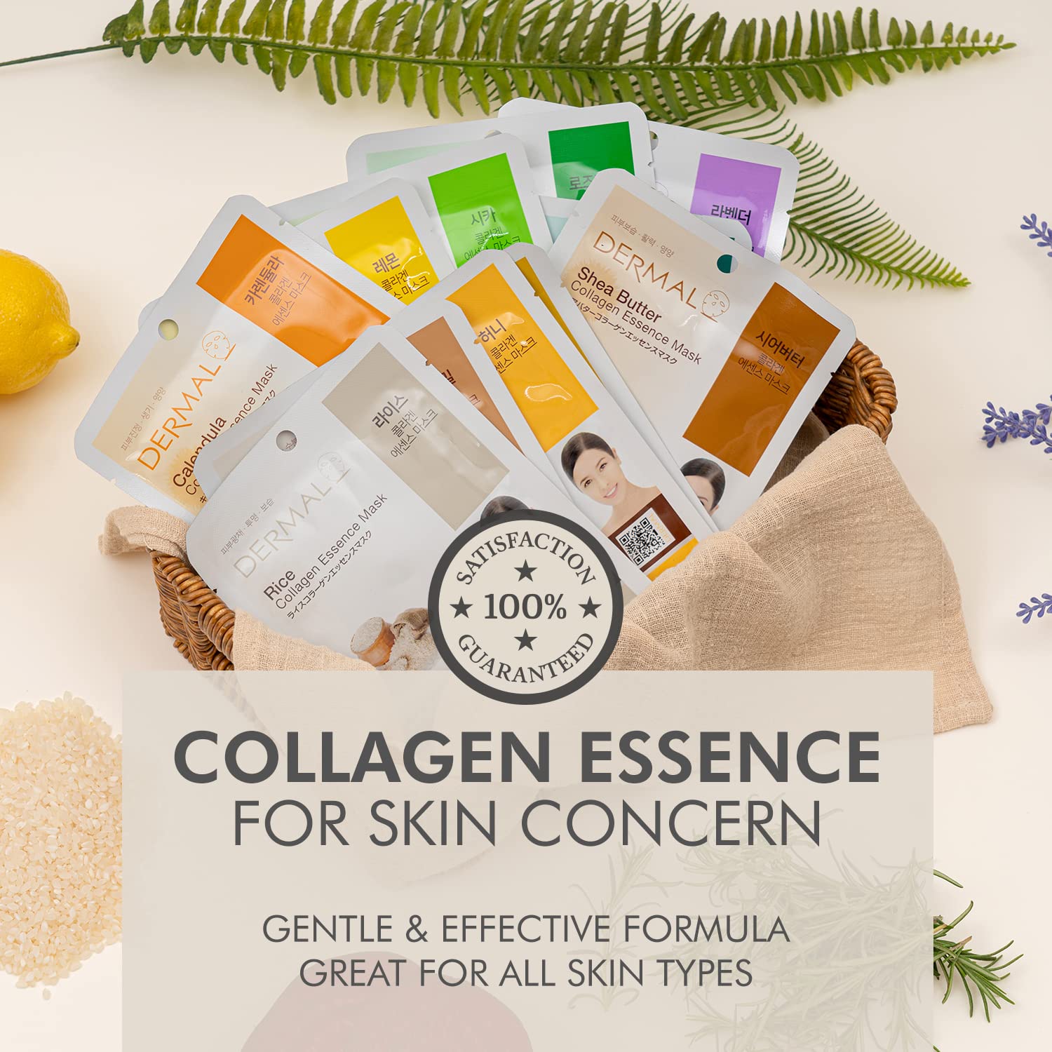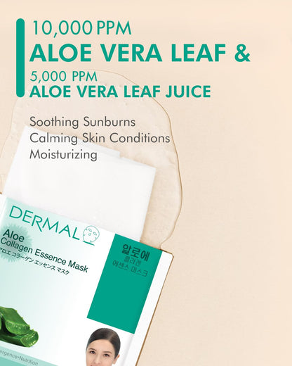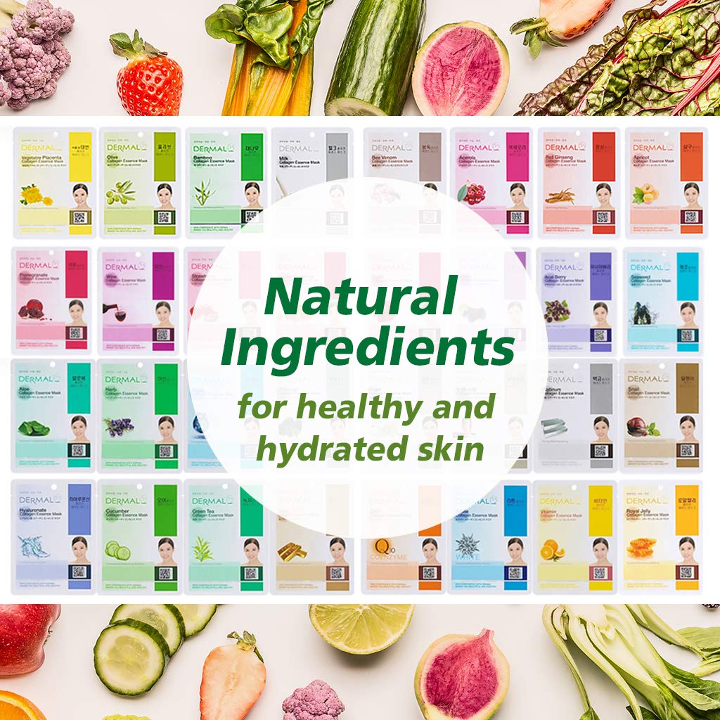 DERMAL 24 Combo Pack A Collagen Essence Korean Face Mask - Hydrating & Soothing Facial Mask with Panthenol - Hypoallergenic Self Care Sheet Mask for All Skin Types - Natural Home Spa Treatment Mask