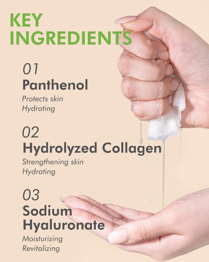 - 【SKIN-SOFTENING & RADIANCE-BOOSTER ORGANIC TREATMENT】 The combination of vitamin E and collagen keeps your skin vibrant and healthy. Perfect for use when caring for your skin, Infused with green tea and cucumber, royal jelly, rose, vitamins, pomegranate, pearl, ginseng, and other natural ingredients which are gentle on sensitive skin.